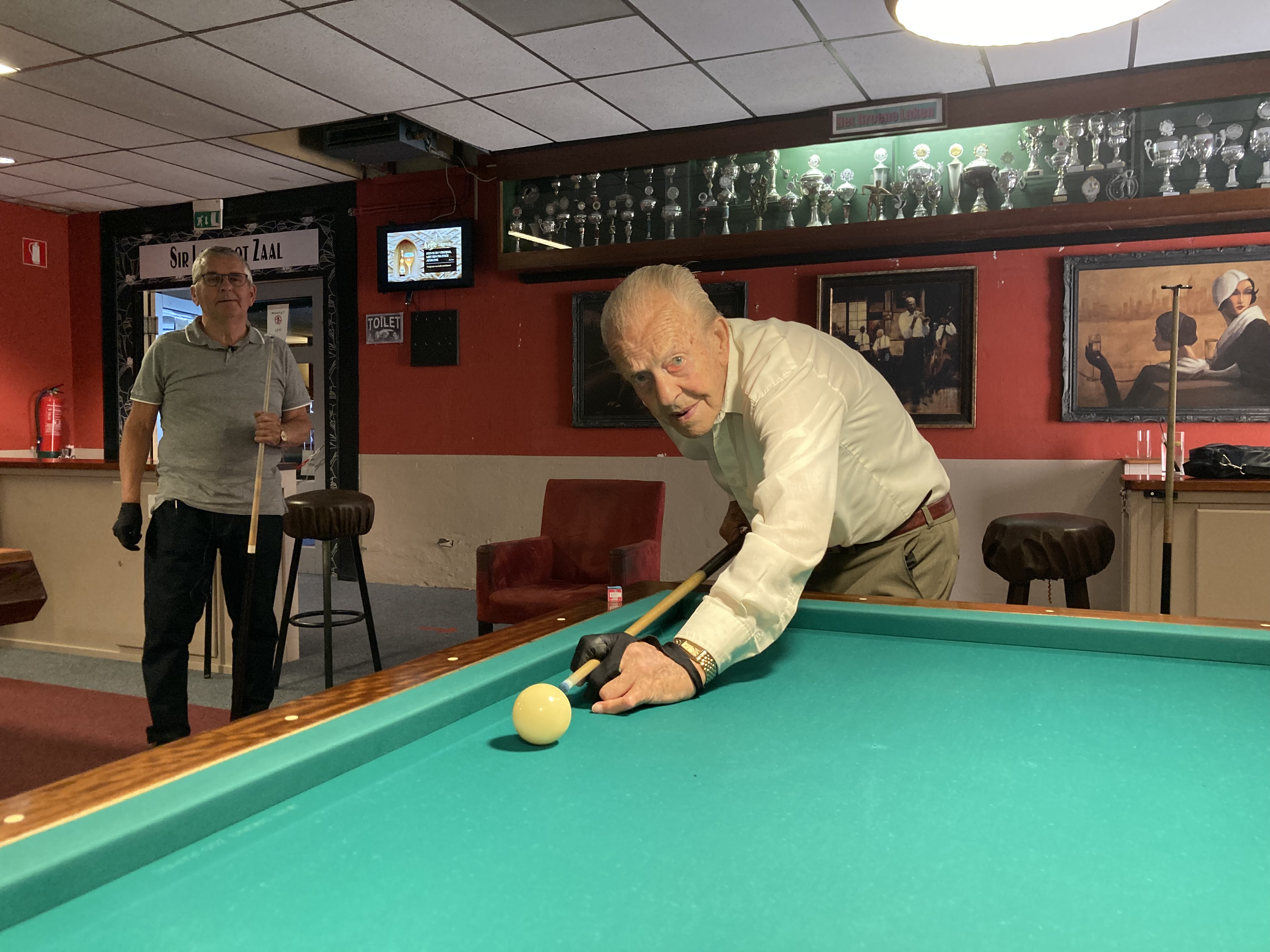 Daan de Jong uit Bloemendaal is 101 jaar oud en niet te stoppen als het gaat om biljarten. Zo’n 25 jaar geleden begon hij met het spelletje en nog altijd heeft hij er veel plezier in. “Het gaat nu beter dan toen ik begon en het houdt ons van de straat.”
