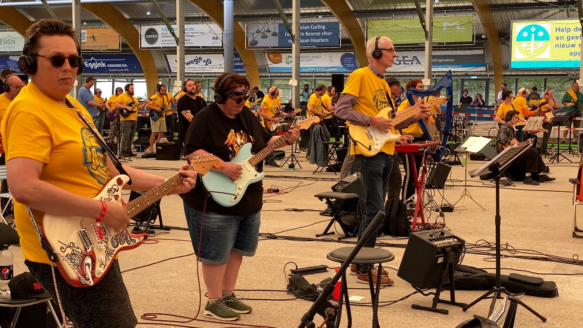 Van professionele muzikanten tot amateurs en van jong tot oud. Iedereen met enig muzikaal gevoel en die een keer in een echte band wil spelen, kan meedoen met De Grootste Band van Nederland (DGBVN). Op de ijsbaan in Haarlem-Noord werd vandaag voor de derde keer dit evenement georganiseerd. En het werd weer een groot muziekfeest.