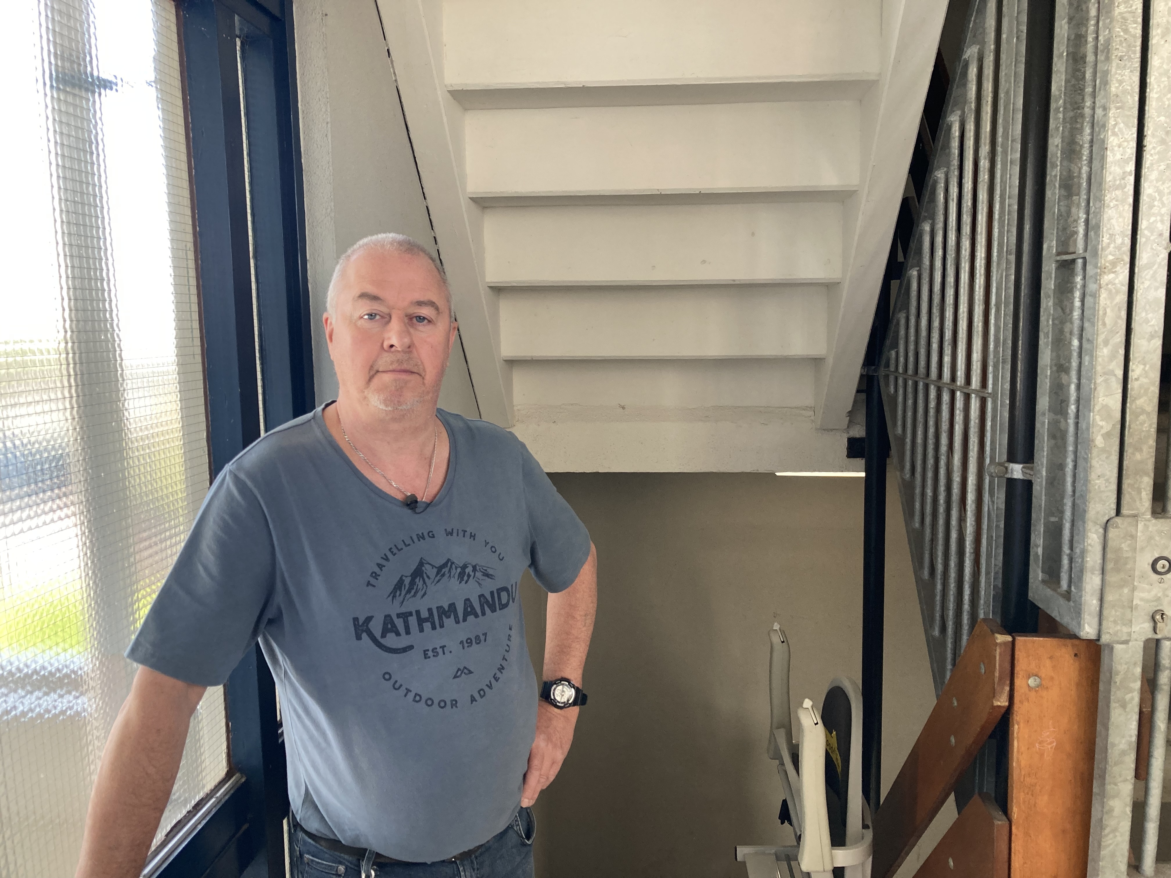 Ook een buurman van Ottevanger, die moeilijk loopt en een stok heeft, ondervindt hinder van de kapotte liften. “Ja het is wel vervelend. Ik ben wel 20 minuten bezig om boven te komen.”
