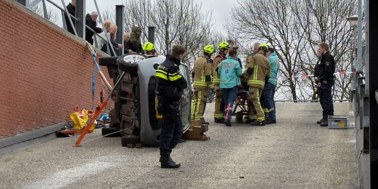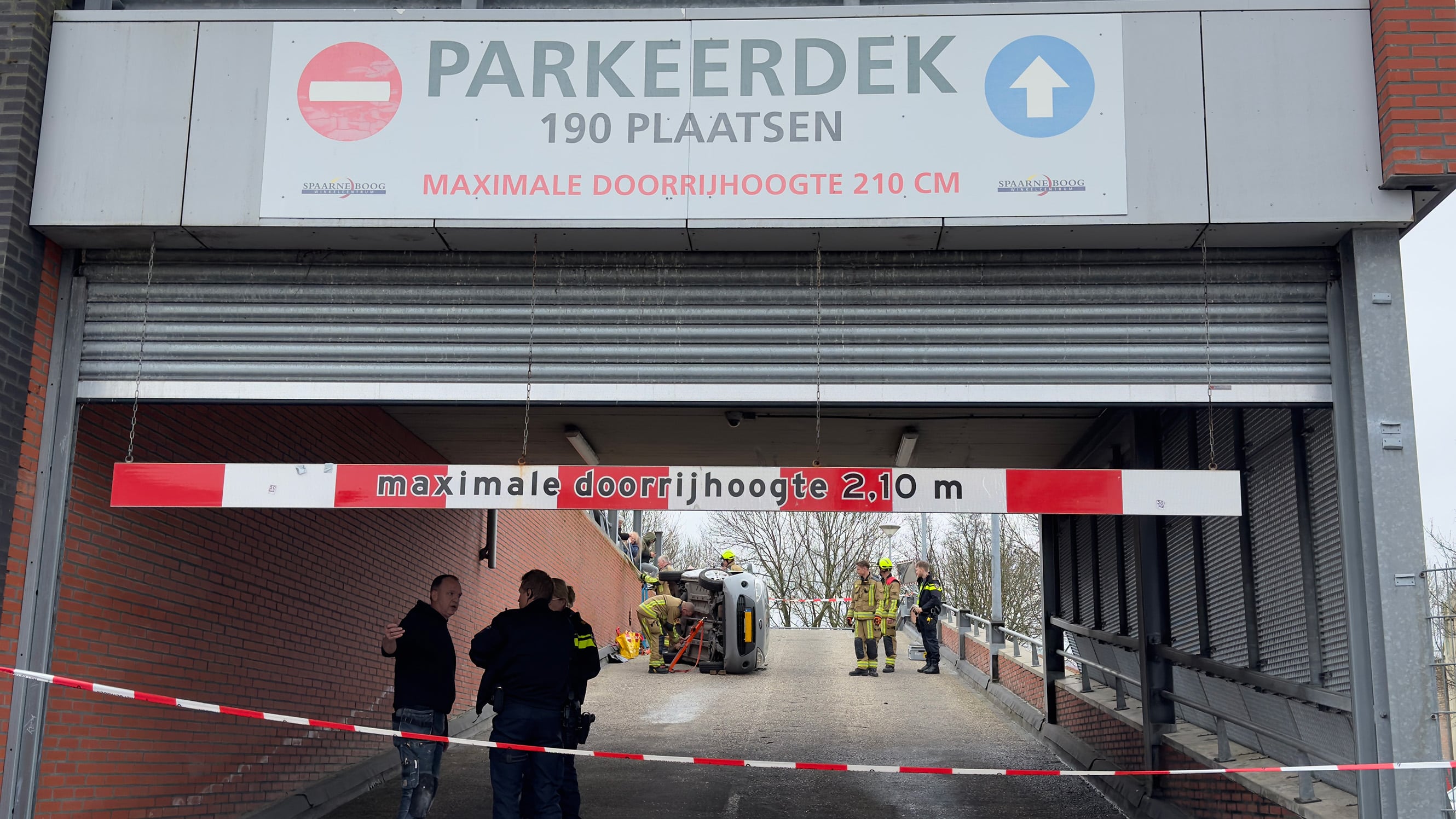 De bestuurder van een auto belandde aan het begin van de middag met zijn auto op de zijkant, toen hij de parkeergarage van winkelcentrum Spaarneboog in Haarlem-Noord wilde uitrijden. Vermoedelijk is een stuurfout de oorzaak van het ongeluk.