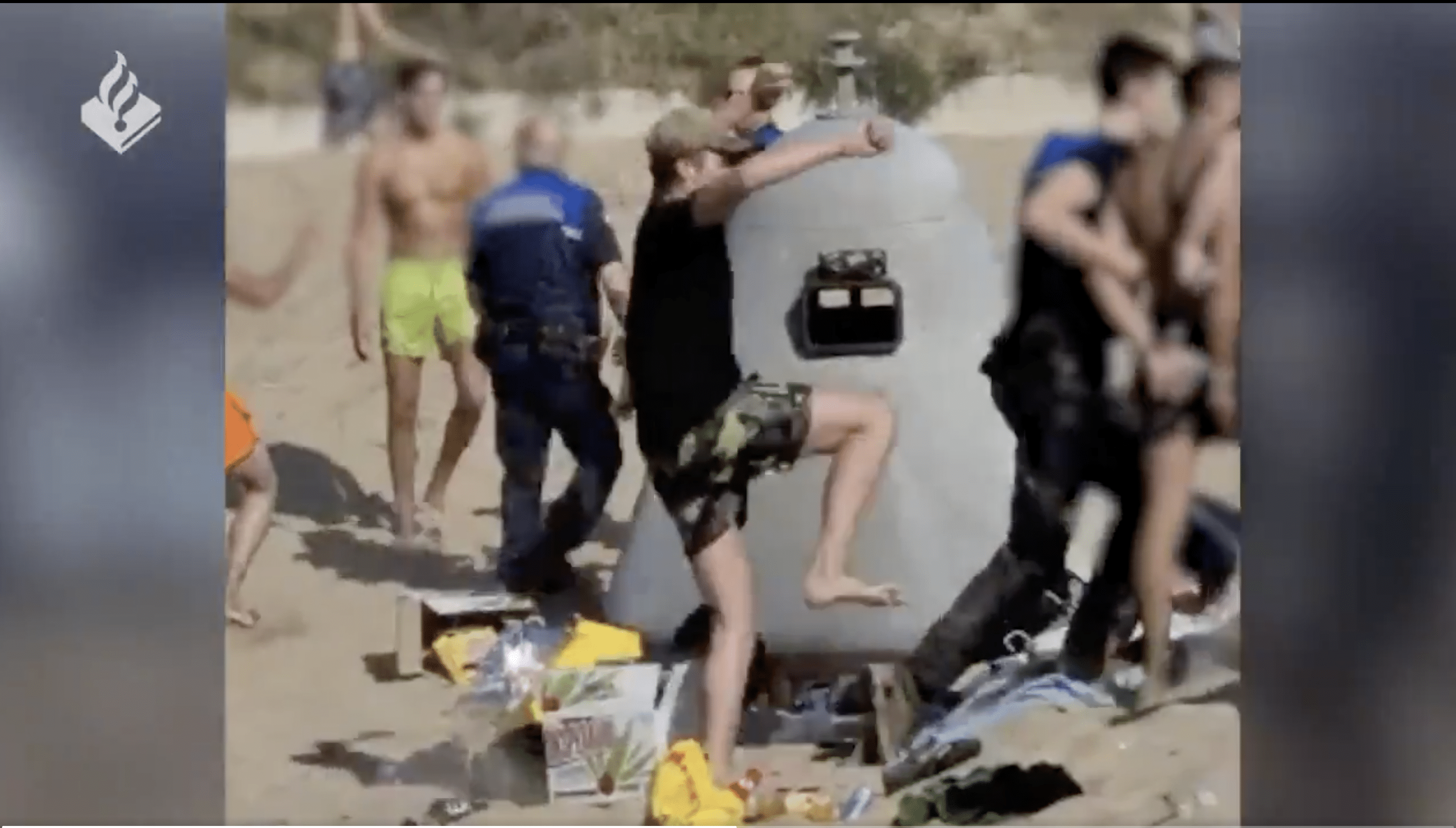 De politie heeft beelden vrijgegeven van de mishandeling van vier handhavers op het strand van IJmuiden. Diezelfde dag zijn twee verdachten van 17 jaar aangehouden, maar een derde dader is nog niet gevonden. De politie hoopt deze jongen nu alsnog te vinden.