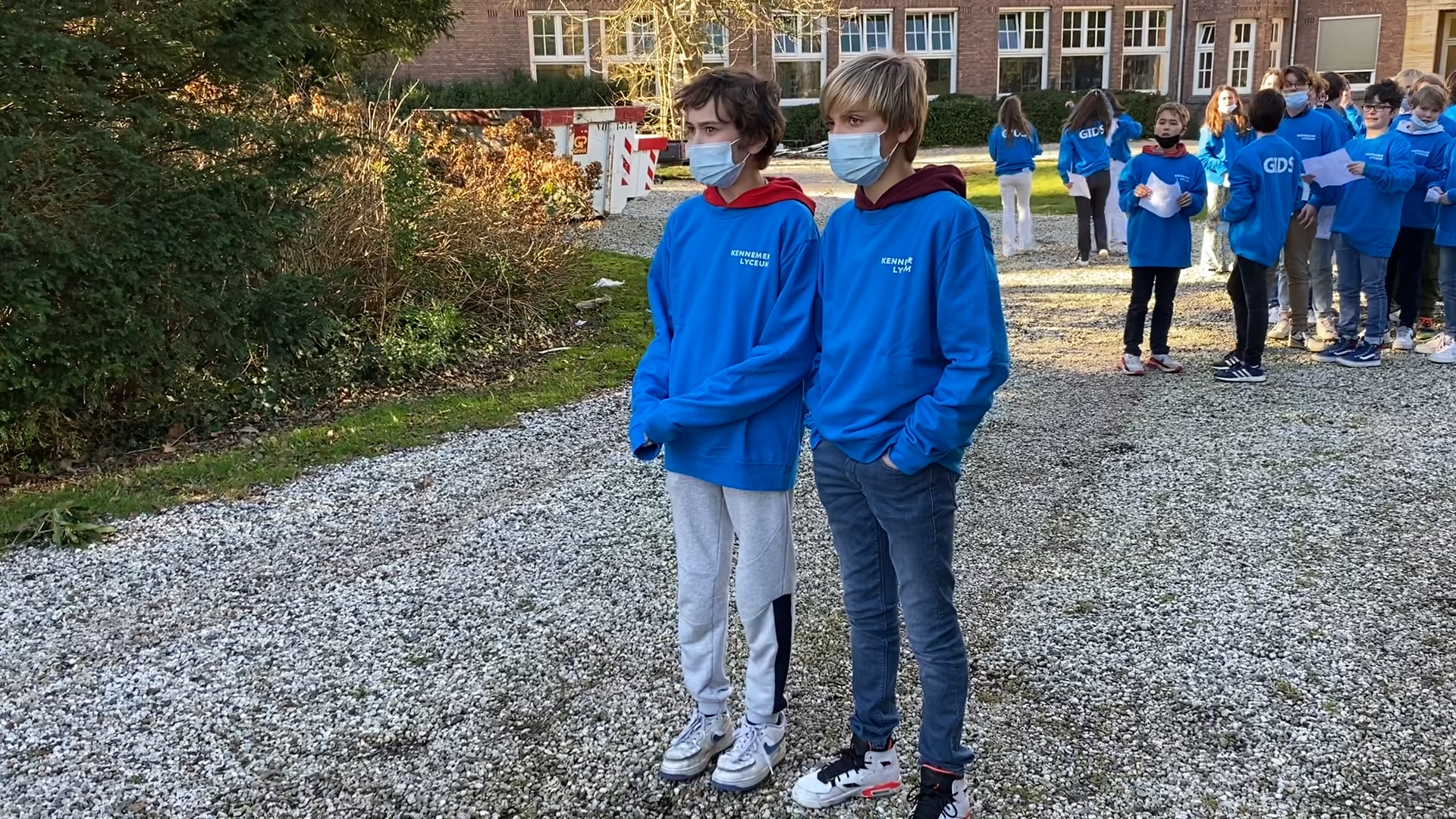 De brugklassers van het Kennemer Lyceum in Overveen stonden gisteren na de les, groep 8-leerlingen uit de omgeving op te wachten bij de ingang van de school. In verschillende tijdsblokken werden de toekomstige middelbare scholieren door het gebouw geleid zodat zij toch nog een beetje sfeer konden proeven.