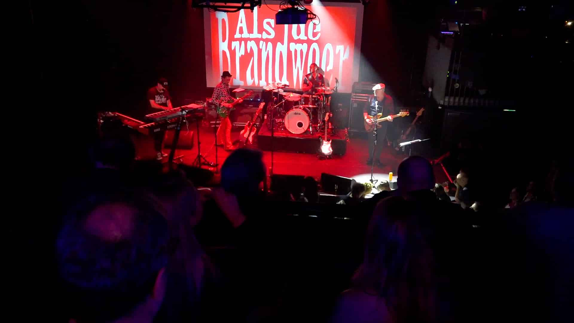 De kleine zaal van het Patronaat in Haarlem was zondag afgeladen vol tijdens het laatste optreden van de Haarlemse band ‘Als de Brandweer’. Ook op de trap en de balustrade stond het publiek te genieten.