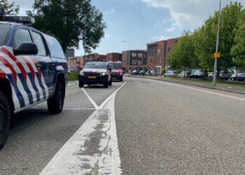 Lees meerDetailsLoeiende brandweersirenes voor het Spaarne Gasthuis in Schalkwijk. De uitgestapte brandweermannen zwaaien naar een colonne met 20 speciale auto’s. Daarin...