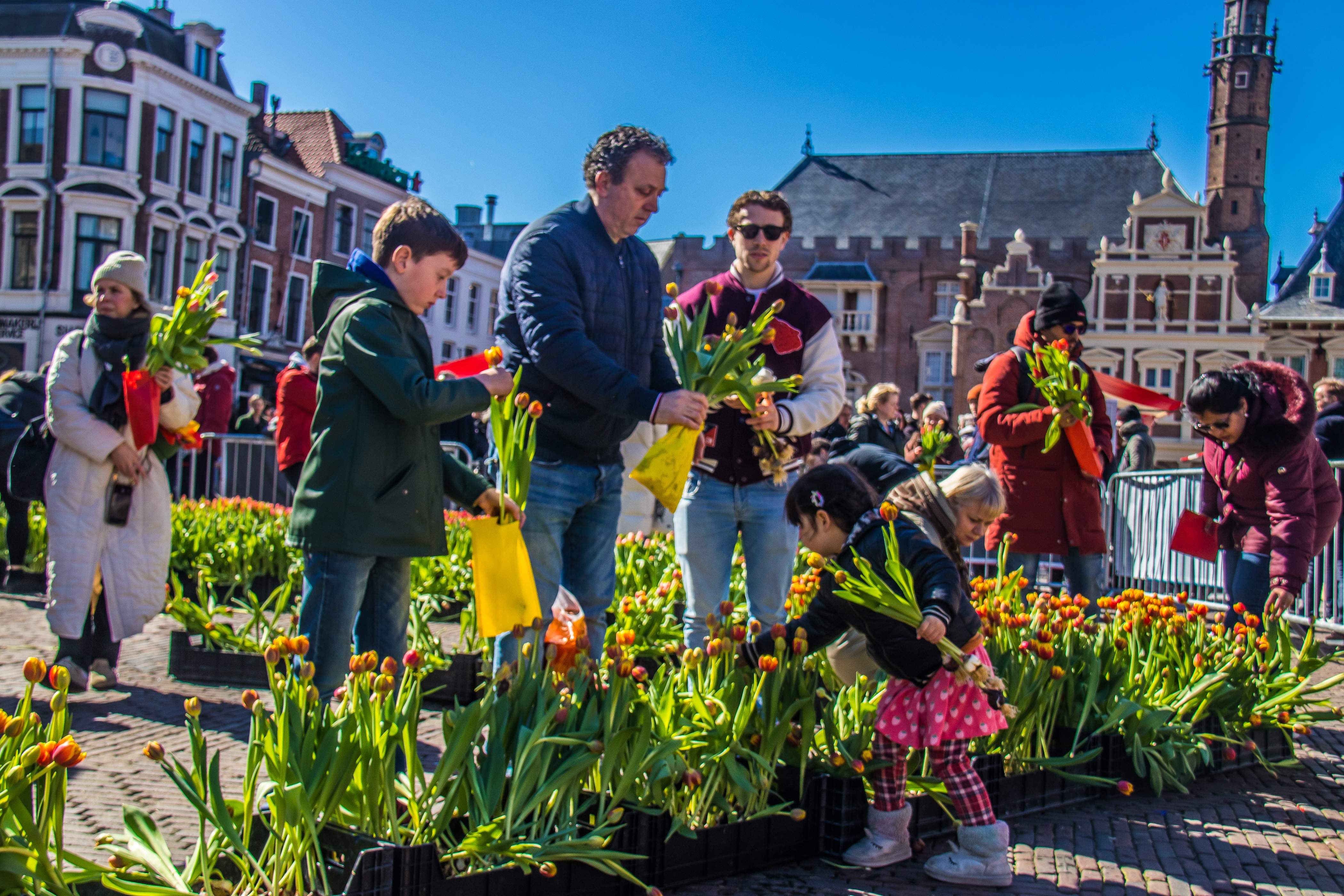 Misschien heb je de afgelopen weken al kratten met tulpen versprijd door de stad zien staan voor winkels. Aanstaande zondag wordt van 11.00 tot 17.00 uur de Grote Markt omgetoverd tot bloemenzee. Er worden 40.000 tulpen mét bol geplaatst op de Grote Markt. Als bezoekers een aankoop hebben gedaan in de binnenstad van Haarlem ter waarde van minimaal 10 euro, mogen zij gratis 10 tulpen komen plukken in de tulpenpluktuin. Organisator Chantal Bakhuis vertelde erover in Haarlem Vandaag.