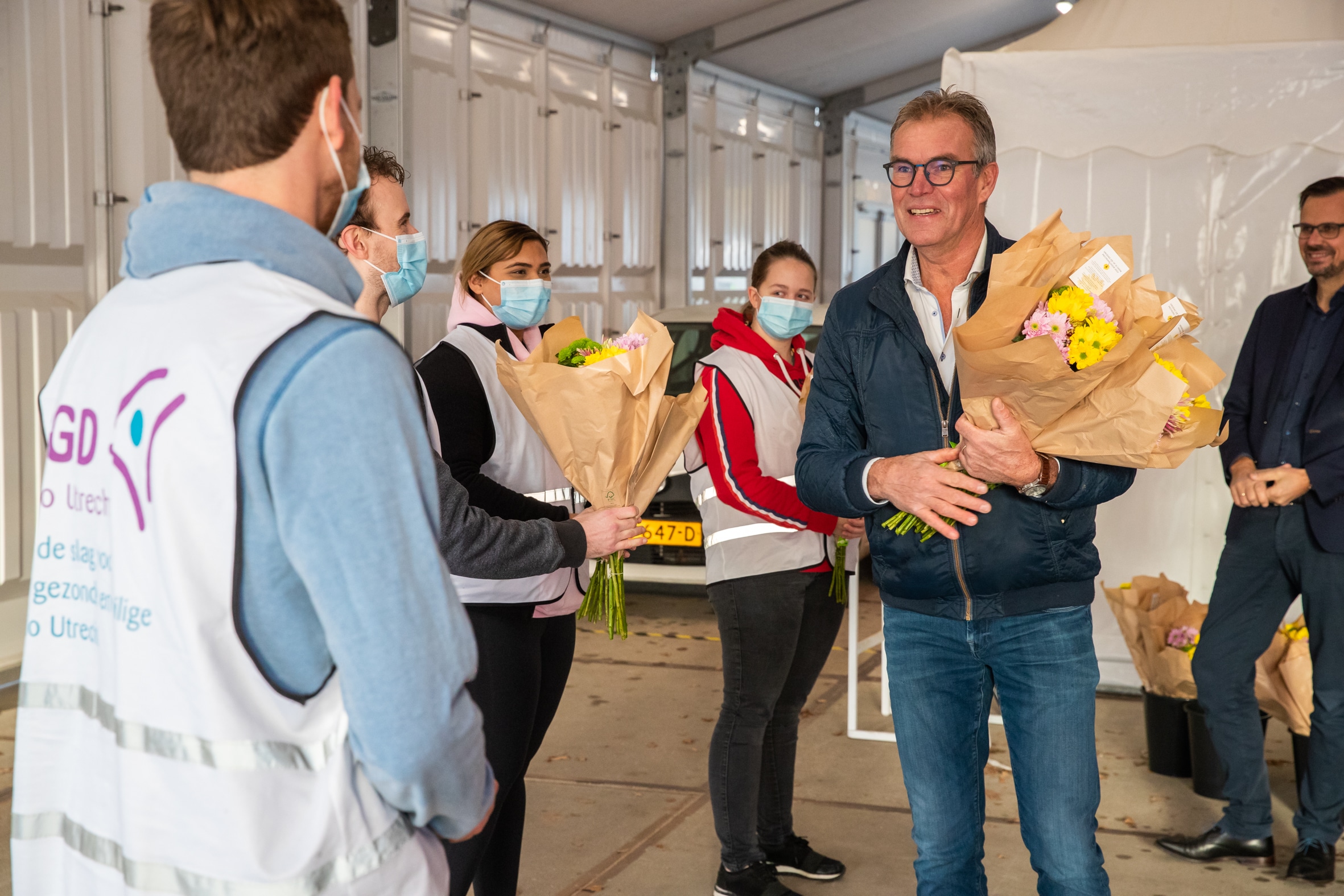 GGD-medewerkers in de teststraten in Nederland hebben vrijdag bloemen gekregen als dank voor hun ‘onuitputtelijke werk tijdens de coronacrisis’. Zij kregen vrijdag, de 13e nog wel, een kleurrijk boeket chrysanten, aangeboden door Stichting Chryson, het collectief van de Nederlandse chrysantenkwekers en -veredelaars. De chauffeurs van Lekkerland en VSDV zijn de hele dag druk in de weer geweest om de ruim 3.400 boeketten af te leveren bij de medewerkers.