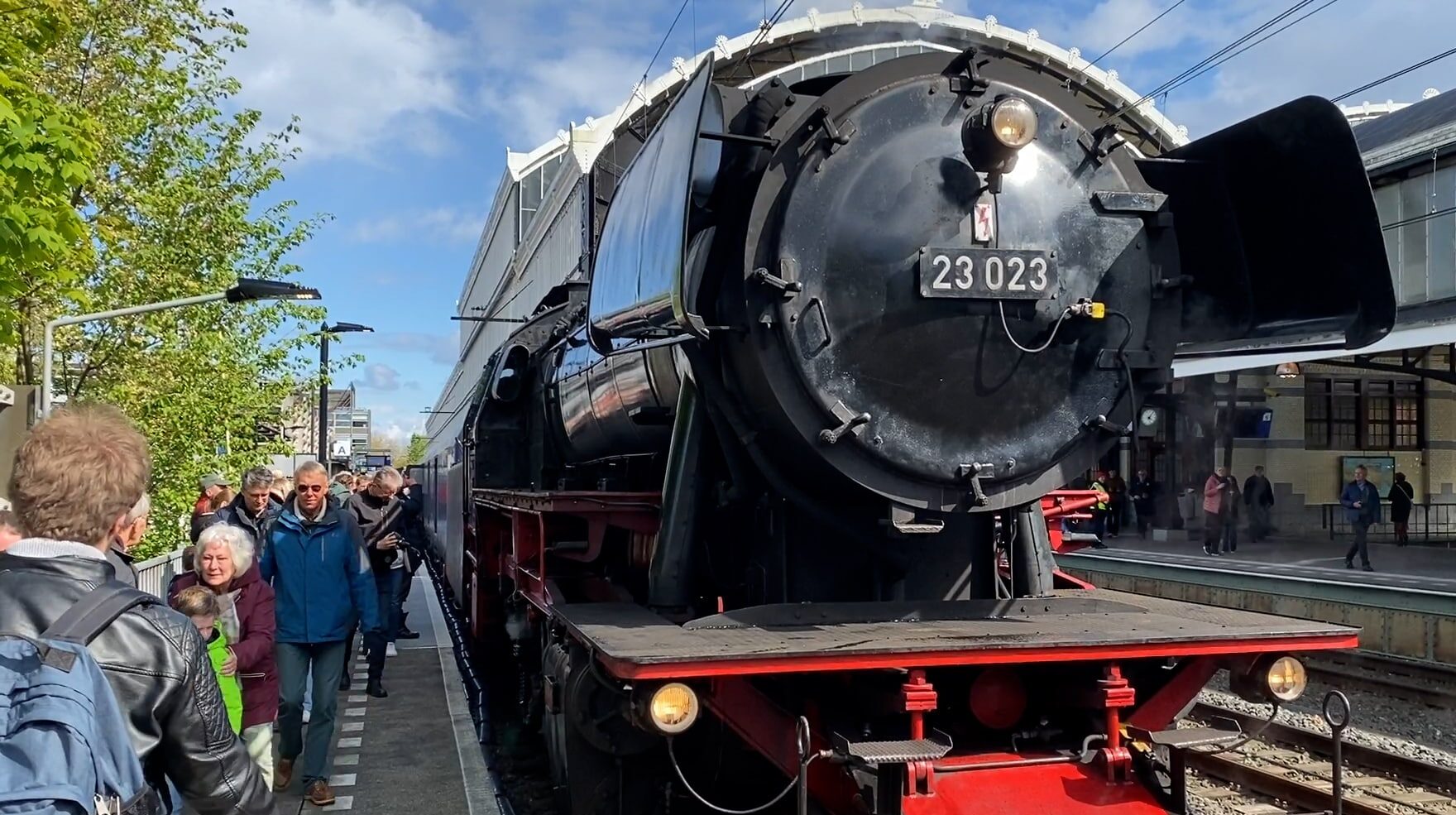 Een stoomtrein op het station in Haarlem trok gisteren veel bekijks. Naast het bekijken van de oude trein konden bezoekers ook een ritje maken door de bollenvelden, daar moesten ze alleen wel op tijd bij zijn. De trein reed vijf keer op en neer naar Leiden, en alle vijf de ritten waren snel uitverkocht volgens organisator Het Stoomgenootschap.