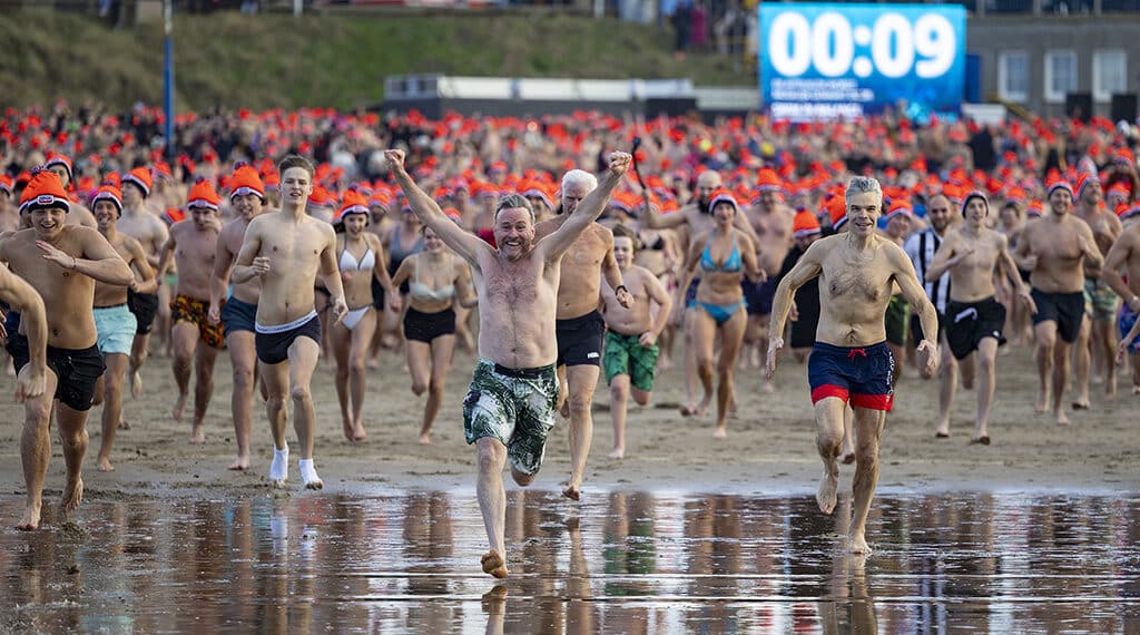 Duizenden deelnemers zijn het jaar begonnen met een frisse duik. Zij deden mee aan de traditionele nieuwjaarsduik op het strand van Zandvoort. Om 14:00 doken zij de koude zee in.