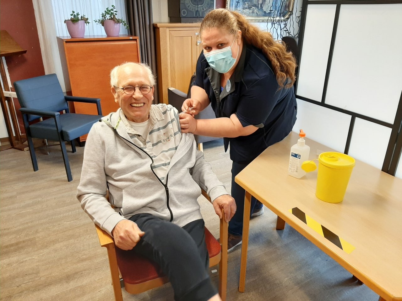 De eerste oudere in woonzorginstelling Sint Jacob heeft deze week zijn coronaprik gekregen. De man kreeg de vaccinatie donderdag van Maria Spijkerbosch, zij is de verpleegkundige die zelf als eerste medewerker van Sint Jacob het vaccin kreeg. Ouderenzorgorganisatie Sint Jacob begon maandag met het vaccineren van de bewoners tegen COVID-19.