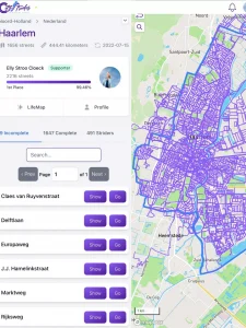 Elly houdt namelijk enorm van de ‘wandelrush’. Als ze thuiskwam, keek ze op de website die haar statistieken bijhield. “Die website is zo opgezet dat je steeds wordt beloond. Je percentage gelopen straten gaat weer omhoog, en dat geeft een ontzettende dopamineshot.”