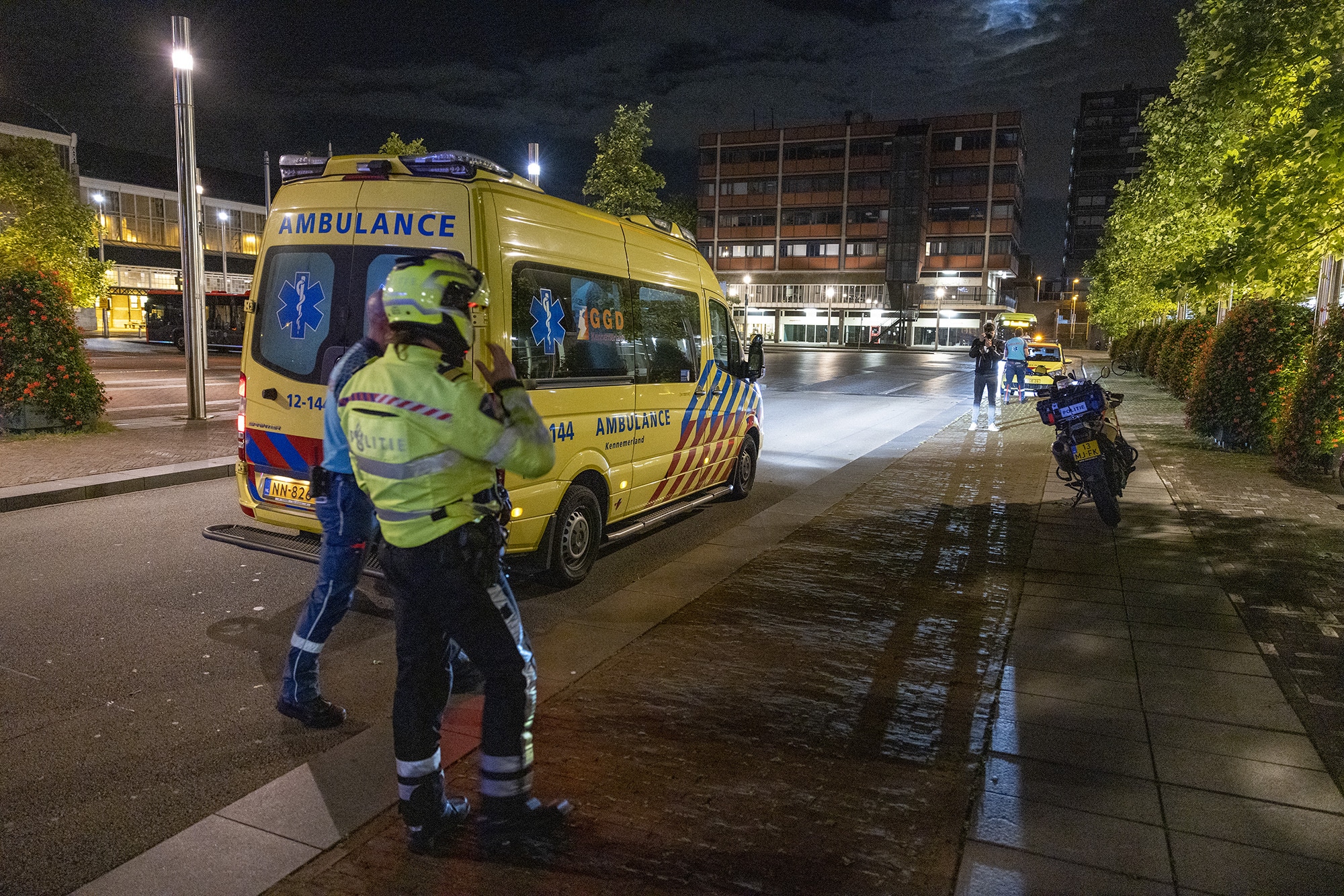 Een fietser is afgelopen nacht hard ten val gekomen op het Stationsplein. Even na half een ging de man onderuit op zijn fiets. Meerdere ambulances en een traumateam werden opgeroepen om hulp te bieden.