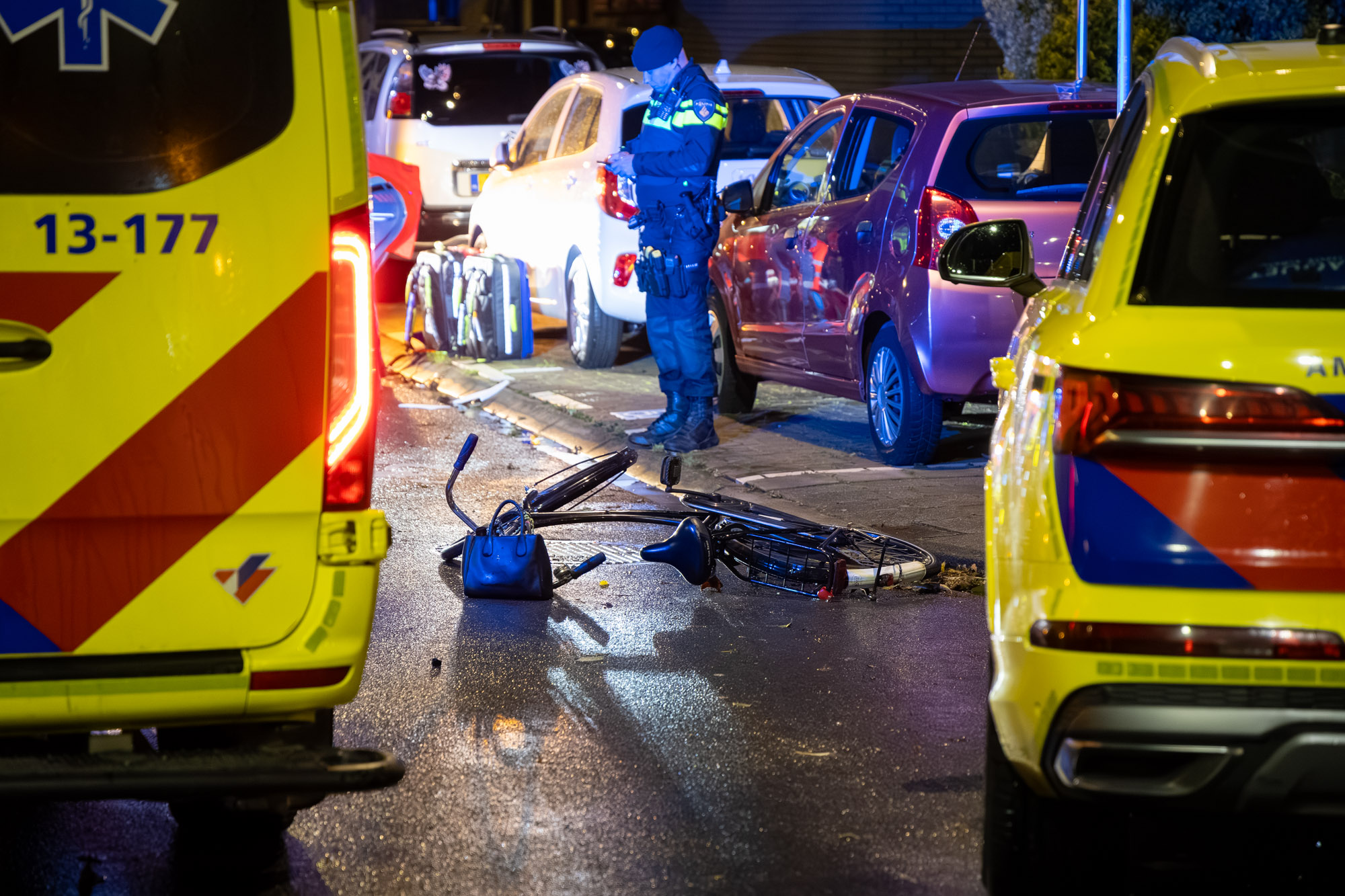De politie heeft de straat enige tijd afgezet voor onderzoek. Op de weg lagen onder meer een afgebroken autospiegel en de fiets van het slachtoffer.