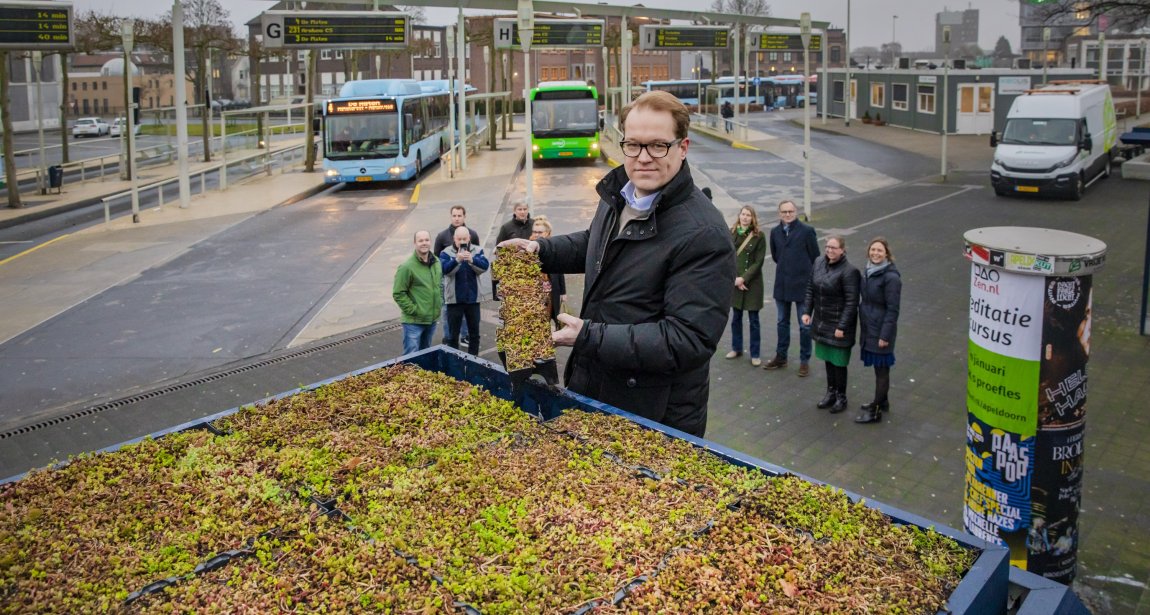 Twee bushokjes aan het Verwulft hebben sinds maandag een dak met plantjes erop. De daken helpen om de luchtkwaliteit te verbeteren en zijn goed voor de biodiversiteit, zegt de gemeente. Bij warm weer moet het de stad koeler maken. Op de vetplantjes komen ook insecten af, een bewuste keuze voor een stedelijk gebied. Haarlem is de vijfde gemeente waar abri’s groene daken hebben. Haarlem wil ermee inzetten op duurzame oplossingen in de stad.