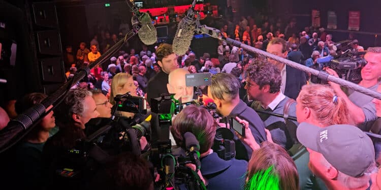 In de zaal zaten partijprominenten als Diederik Samson, Jesse Klaver, Attje Kuiken, Erik van Muiswinkel en ook lokale wethouders als Diana van Loenen (Haarlem), Floor Roduner (Haarlem) en Sam Meerhoff (Heemstede) waren erbij. Toch kwam de pers voornamelijk voor één man: Frans Timmermans. Als hyena’s vlogen ze na afloop op de lijsttrekker af. Ondanks de spannende nek-aan-nekrace tussen vier partijen in de laatste peilingen blijft hij positief: “Ik ben optimistisch. Het is ontzettend spannend, maar saai zou ook niet leuk zijn.”