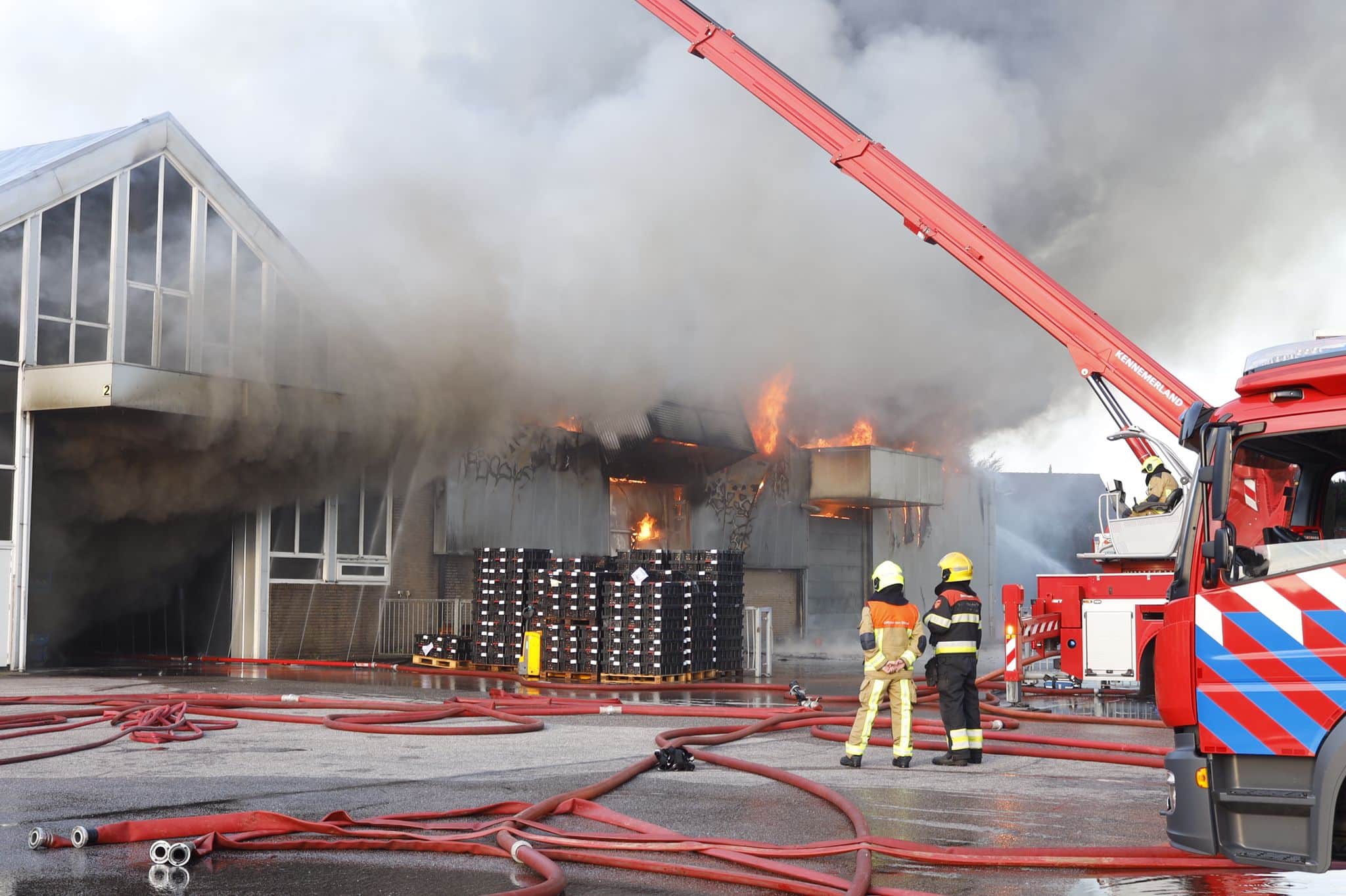 De brand ontstond vanochtend rond 06:00. Het gaat om drie loodsen van een agrarisch bedrijf. Vanuit de hele regio zijn brandweerlieden naar de brand toe. Ook is er een grootwatertransport opgestart, om voldoende bluswater aan de brandweerwagens te voorzien. Het pand kan waarschijnlijk als verloren worden beschouwd.