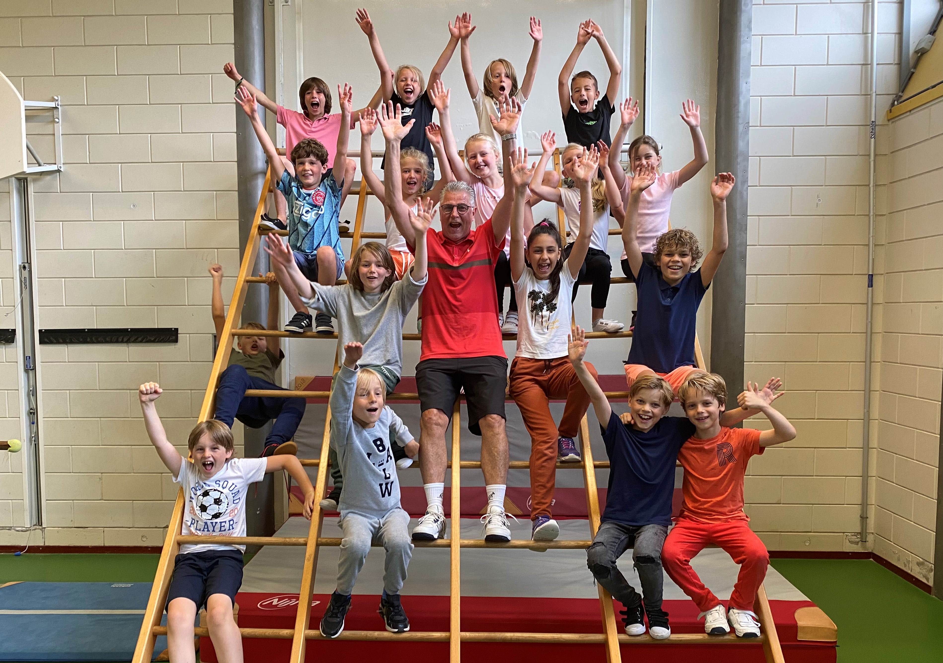 En niet alleen de docent toont emotie tijdens zijn laatste gymles. Ook de kinderen vinden het jammer dat hij vertrekt. “Hoewel ik het ook wel begrijp”, zegt Berend. “Hij is 64 jaar en dan verdien je ook wel wat rust. Zeker als je sportles geeft. Maar hij is super aardig en zijn lessen zijn altijd heel afwisselend.”