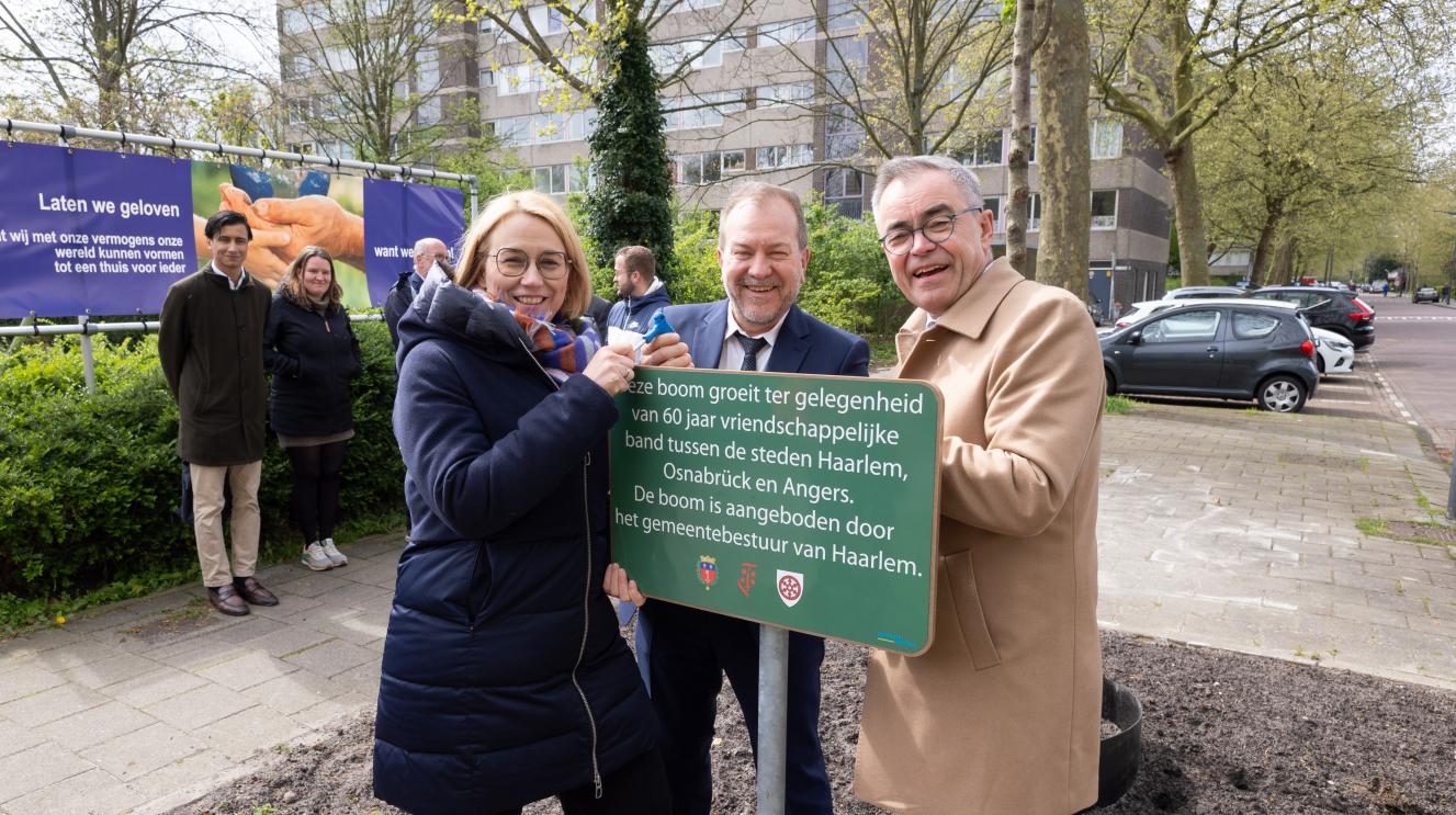 Om de zestigjarige zusterstedenband te vieren met Angers in Frankrijk en Osnabrück in Duitsland heeft de gemeente Haarlem twee bomen geplant. Ze zijn, heel toepasselijk, geplaatst op de Laan van Osnabrück en de Laan van Angers in Schalkwijk.