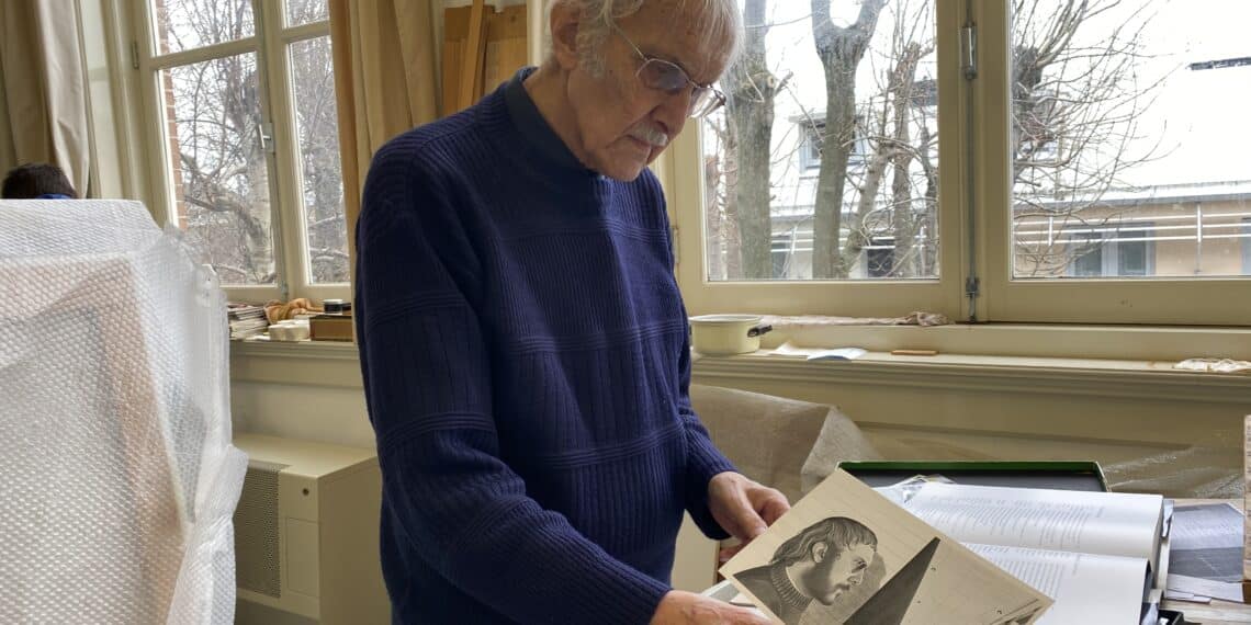 Het atelier van de kunstenaar in de Haarlemse wijk Rozenprieel staat vol met zijn kunstwerken. “Ik werk hier al sinds de jaren 70.” Naast het werkbureau liggen de schets-attributen netjes verzameld met daartussen een bakje vol oude opgebruikte potloden. “Als kind heb ik de oorlog meegemaakt, ik gooi nooit wat weg”, vertelt Fuik daarover.