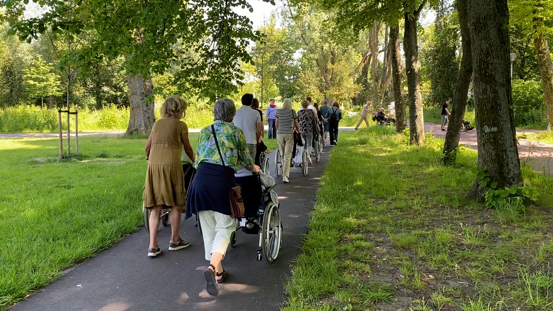 De meeste ouderen zitten in een rolstoel. Ze worden voortgeduwd door vrijwilligers. Onder de vrijwilligers is ook een groep van zeventien handhavers. Ze hebben een teambuilding-dag en mochten een deel van het programma zelf bepalen.