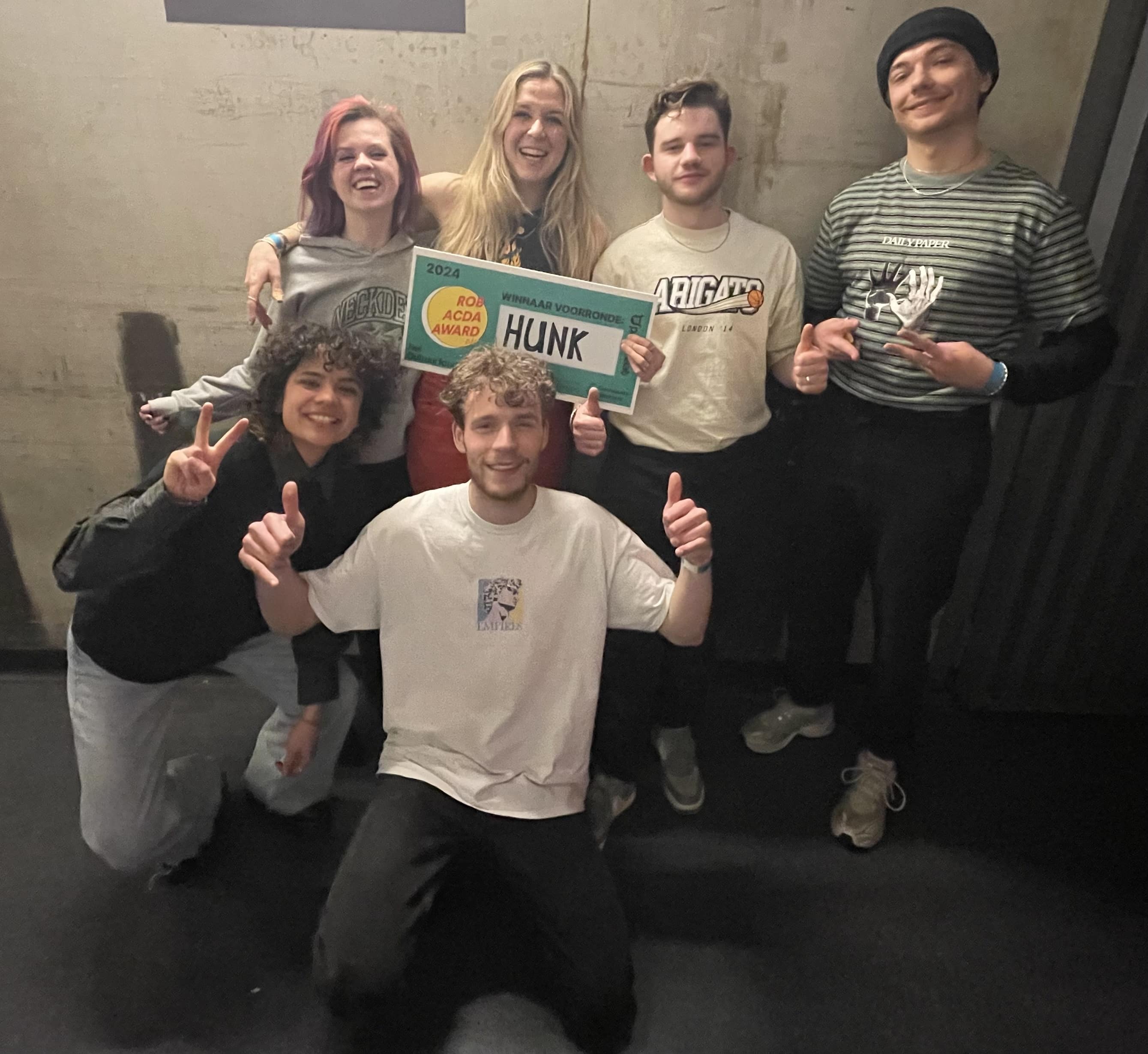 HUNK heeft vanavond de finale van de Rob Acda Award gewonnen in het Patronaat in Haarlem. De Rob Acda Award is een jaarlijkse muziekprijs die wordt uitgereikt aan veelbelovende bands uit de regio Haarlem. HUNK mag als winnaar onder andere optreden op Bevrijdingspop dit jaar.