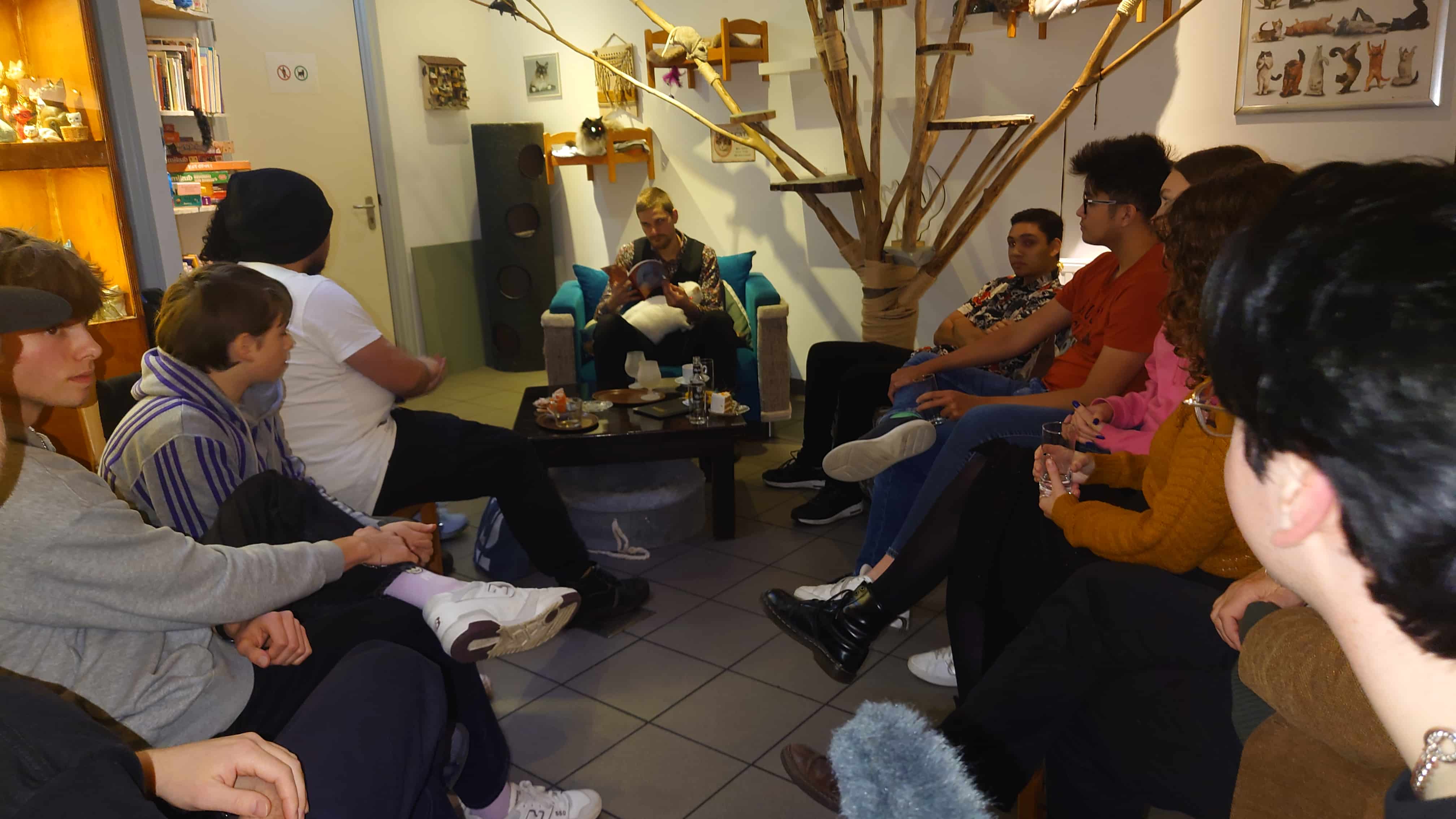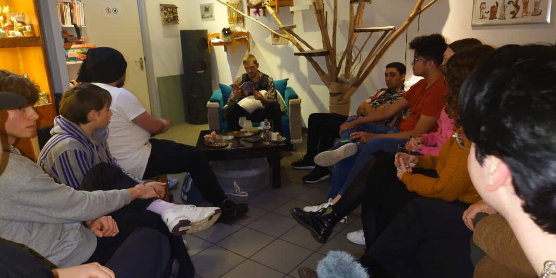 De zeven jongeren die een kleuterboek hebben gemaakt over catfishing hebben dit vrijdag gepresenteerd in Jippies kattencafé. Tijdens de presentatie werd er voorgelezen en legde de groep hun visie uit. “Wij hopen dat leraren dit gaan voorlezen aan de klas”, zegt Mischa Wijgh.