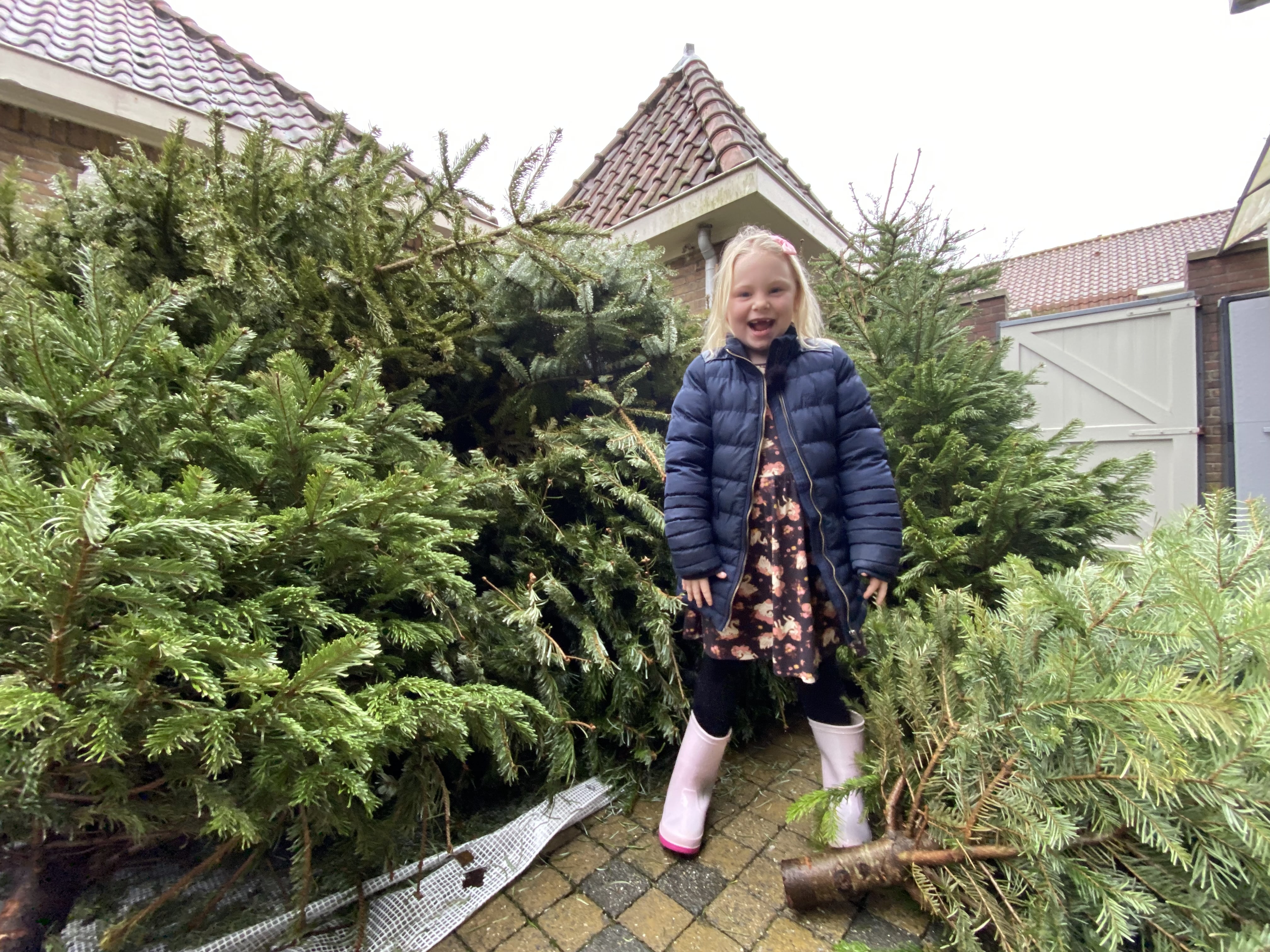 Ze blijven het bij het kerstbomeninleverpunt in Haarlem-Noord mooi vinden hoe de zesjarige Chayenna weer met tientallen kerstbomen aan komt zetten. Net als de voorgaande jaren heeft ze afgelopen dagen zo veel mogelijk bomen verzameld om ze vandaag in te leveren. “Ze doet dit al sinds ze kan lopen.”