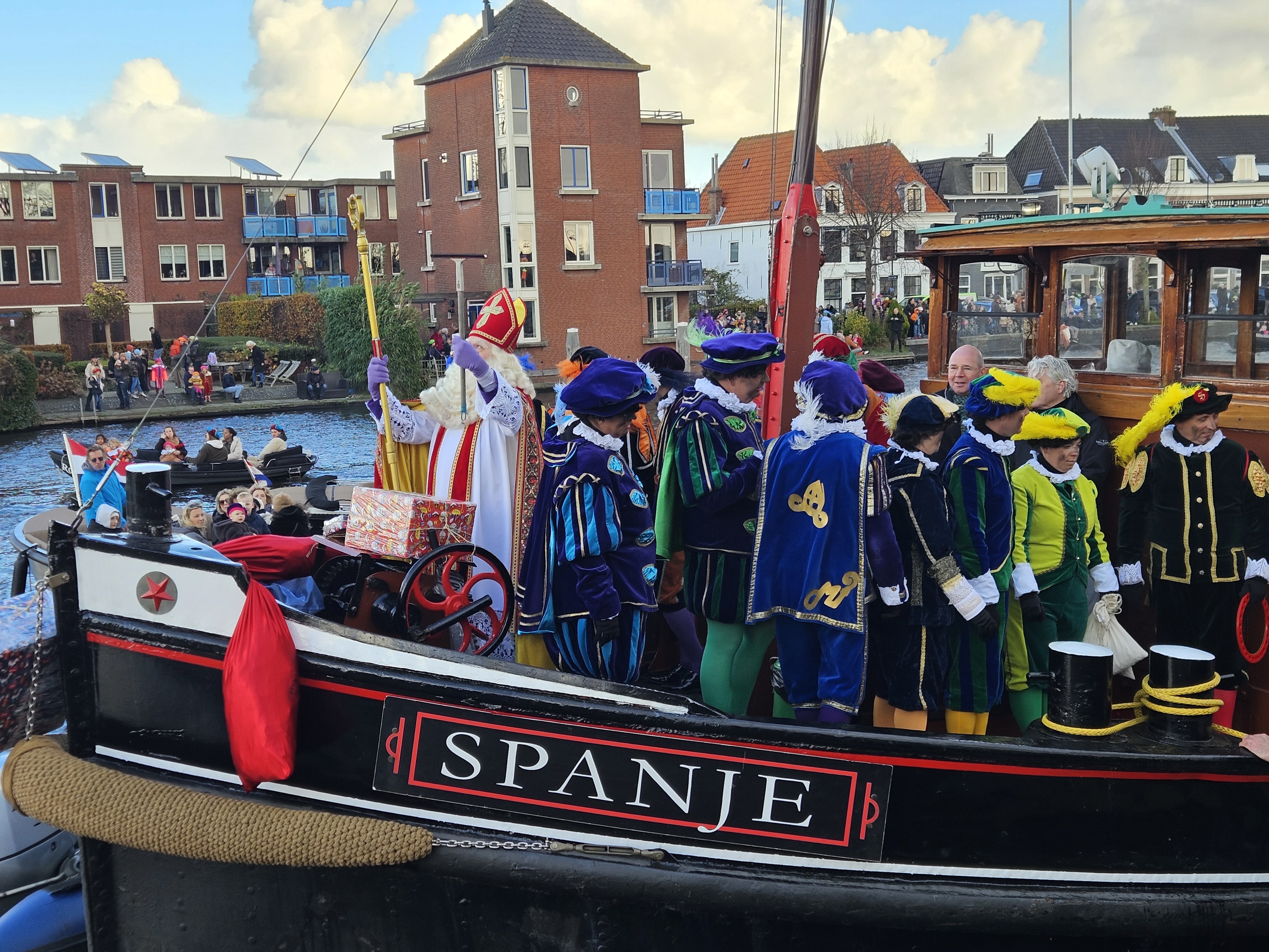 Een kapotte brug gooide bijna roet in het eten tijdens de intocht van Sinterklaas in Haarlem. Gelukkig wist de goedheiligman zijn reis voort te zetten op een kleinere sleepboot. Die was echter zo zwaar beladen met cadeautjes dat er onderweg enkele in het water belandden.