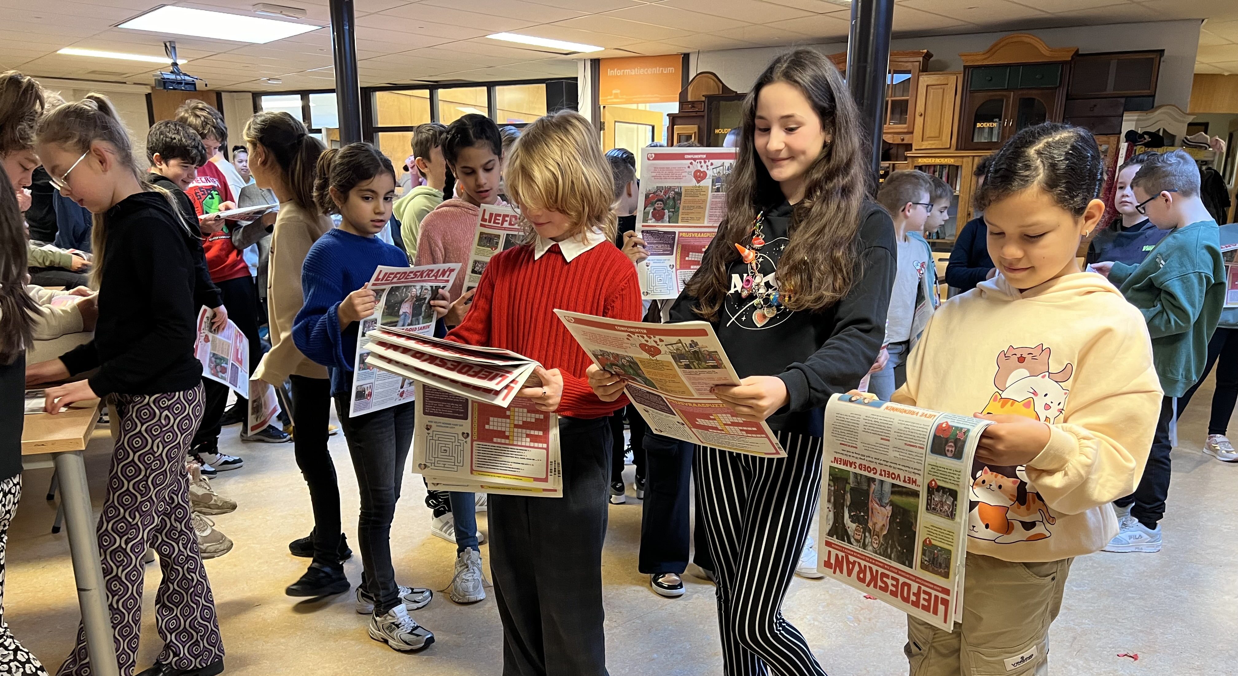 Kinderburgemeester Erina Murseli heeft vanmorgen, bij de aftrap van de Week van de Lentekriebels, de eerste Liefdeskranten uitgedeeld aan de bovenbouw van basisschool De Talenten in Haarlem. Het team Gezonde School van GGD Kennemerland brengt dit jaar de derde editie uit, die dóór en vóór kinderen uit de regio is gemaakt.