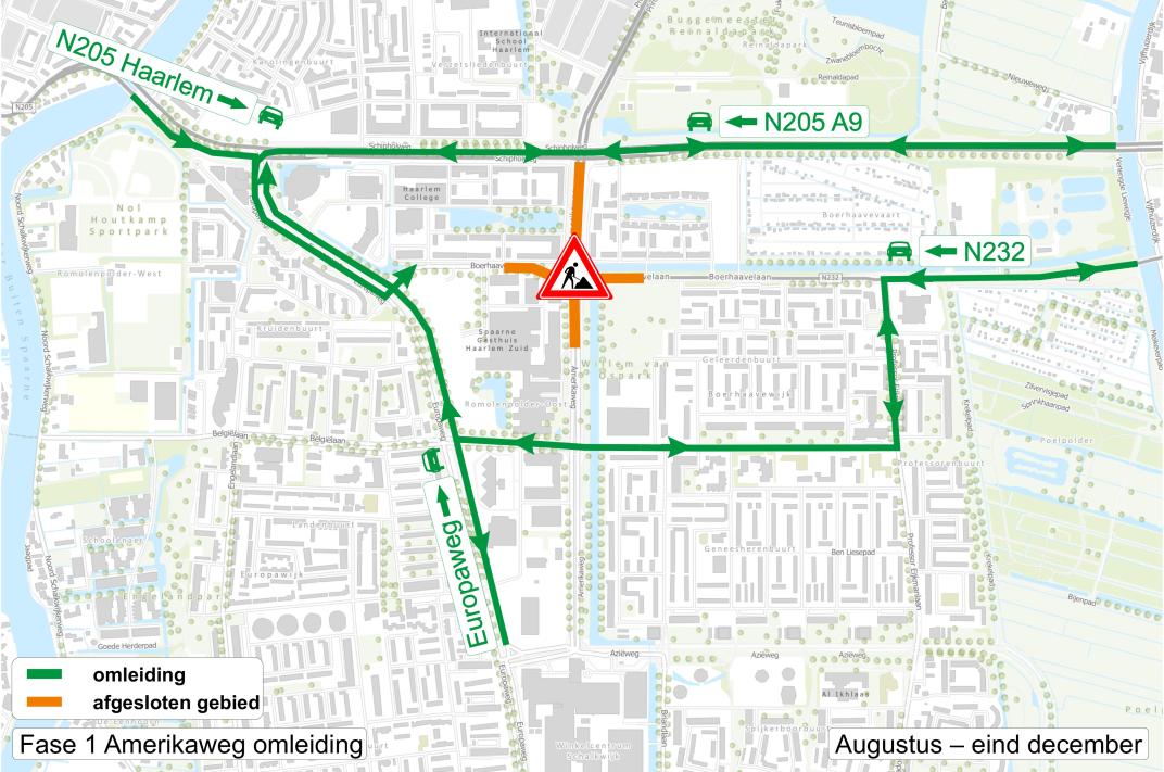 De Amerikaweg en Boerhaavelaan in Haarlem worden de komende tijd opnieuw ingericht. Eerst is de Amerikaweg aan de beurt, als dit in december klaar is dan volgt de Boerhaavelaan. Het verkeer wordt in de tussentijd omgeleid via de Kennedylaan en de Europaweg.