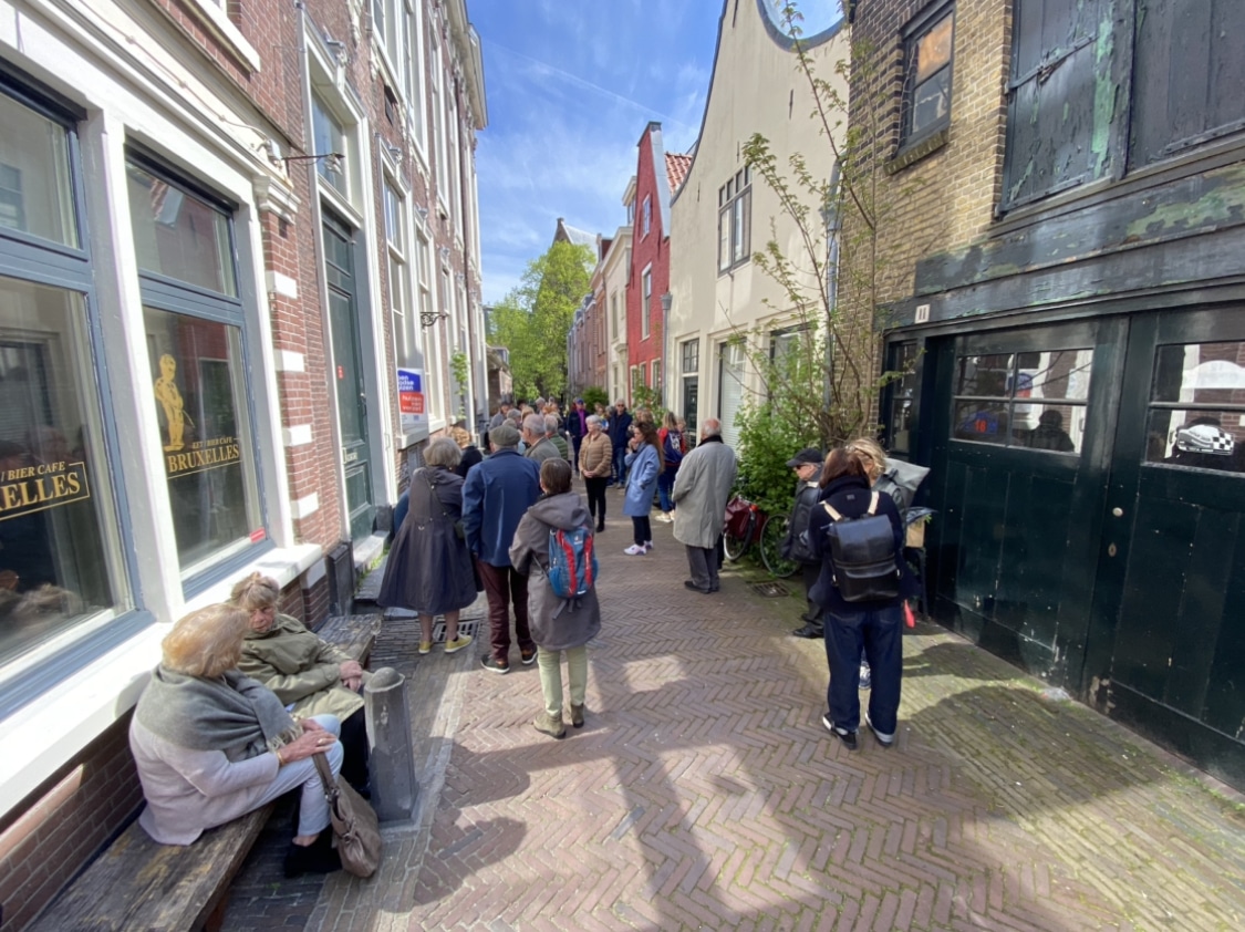 “Helaas, u moet nog even buiten wachten”, zegt een medewerker bij de ingang. “Er mogen maximaal vijftig mensen tegelijk binnen zijn van de brandweer. U moet dus een half uurtje wachten op de volgende rondleiding.” De wachtenden horen de mededeling aan en installeren zich voor een moment van rust in de stralende zon.