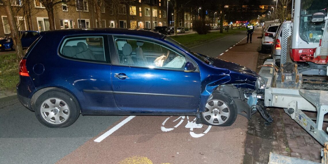 Een 45-jarige man uit Haarlem is maandagnacht vermoedelijk onder invloed tegen een bouwkraan aangereden in de Eksterlaan. De auto raakte flink beschadigd, maar de bestuurder kwam met de schrik vrij.