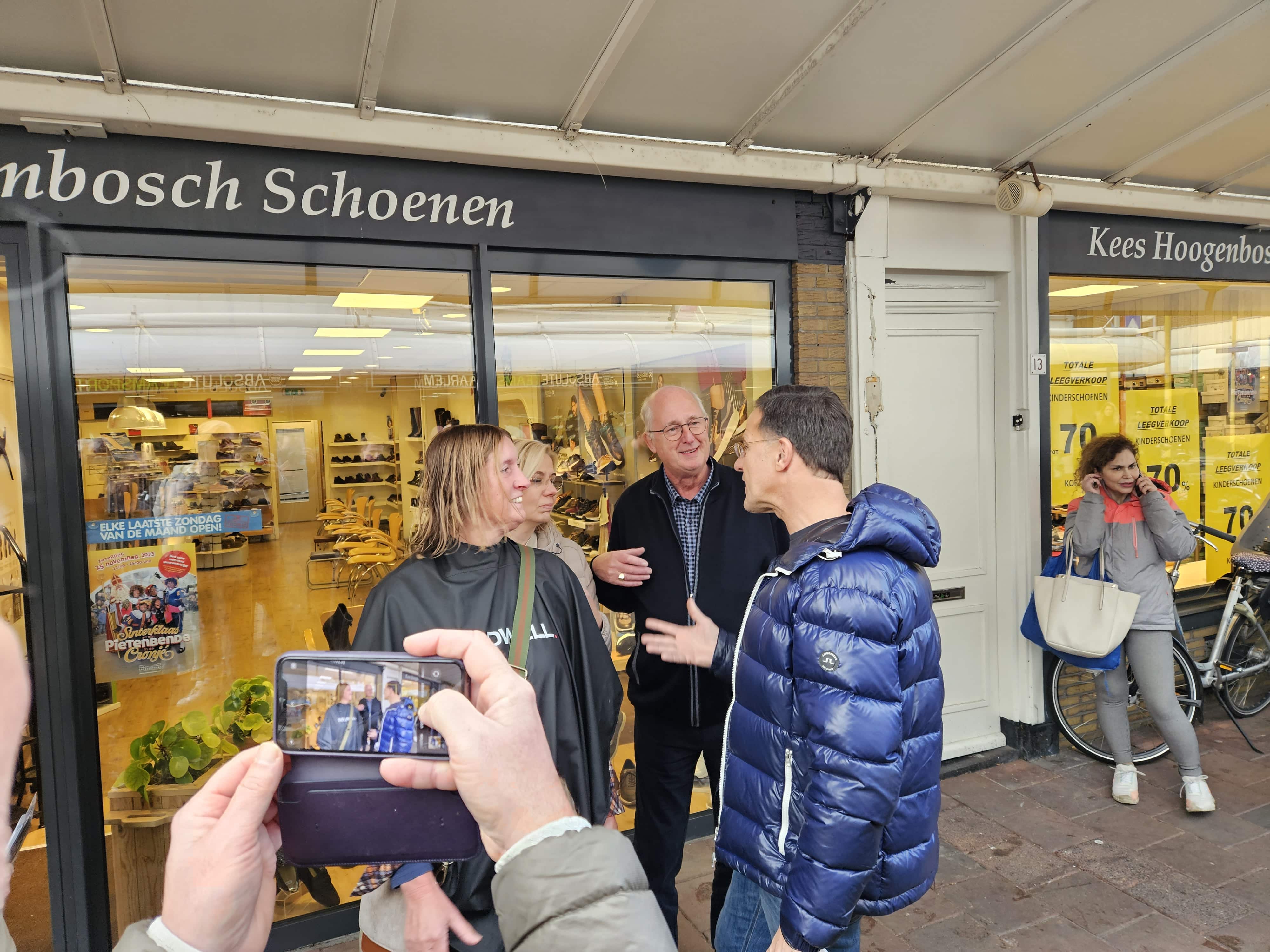 Het winkelend publiek in de Generaal Cronjéstraat werd zaterdagmiddag verrast met een bliksembezoek van demissionair premier Mark Rutte. Voor de verkiezingscampagne kwam hij flyers uitdelen en sprak hij met enkele ondernemers.