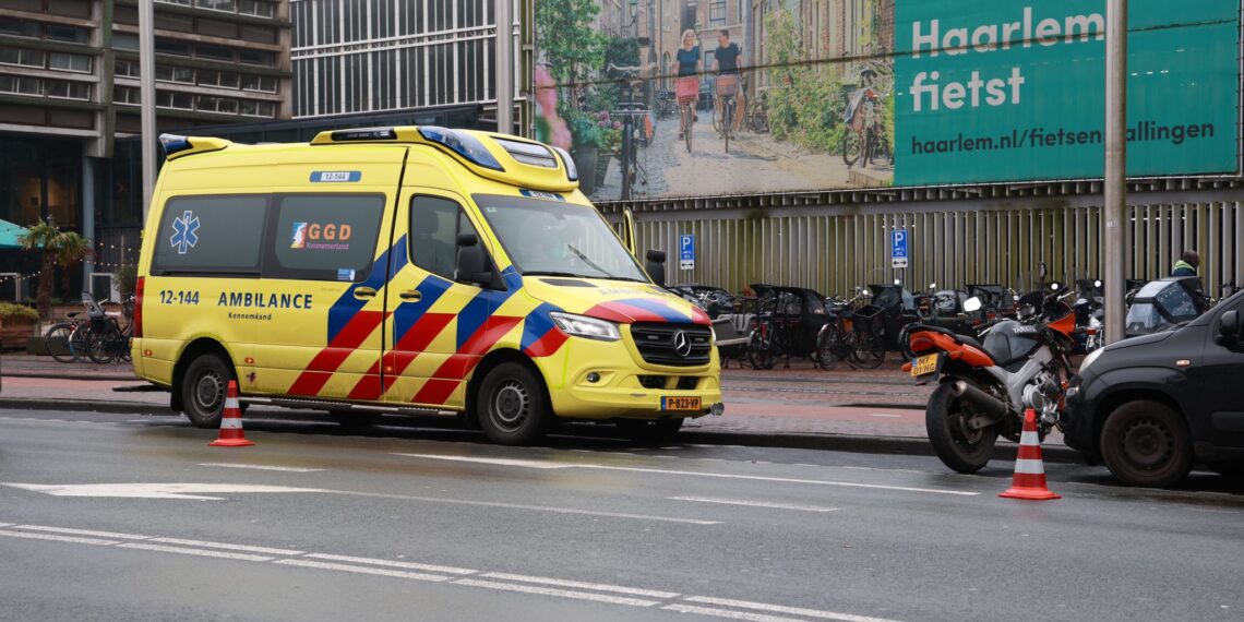 Een motorrijder en een auto botsten vanmiddag rond 13:00 uur op het Kennemerplein. De schade was flink: de voorbumper van de auto lag eraf, en de motorrijder moest met de ambulance naar het ziekenhuis.