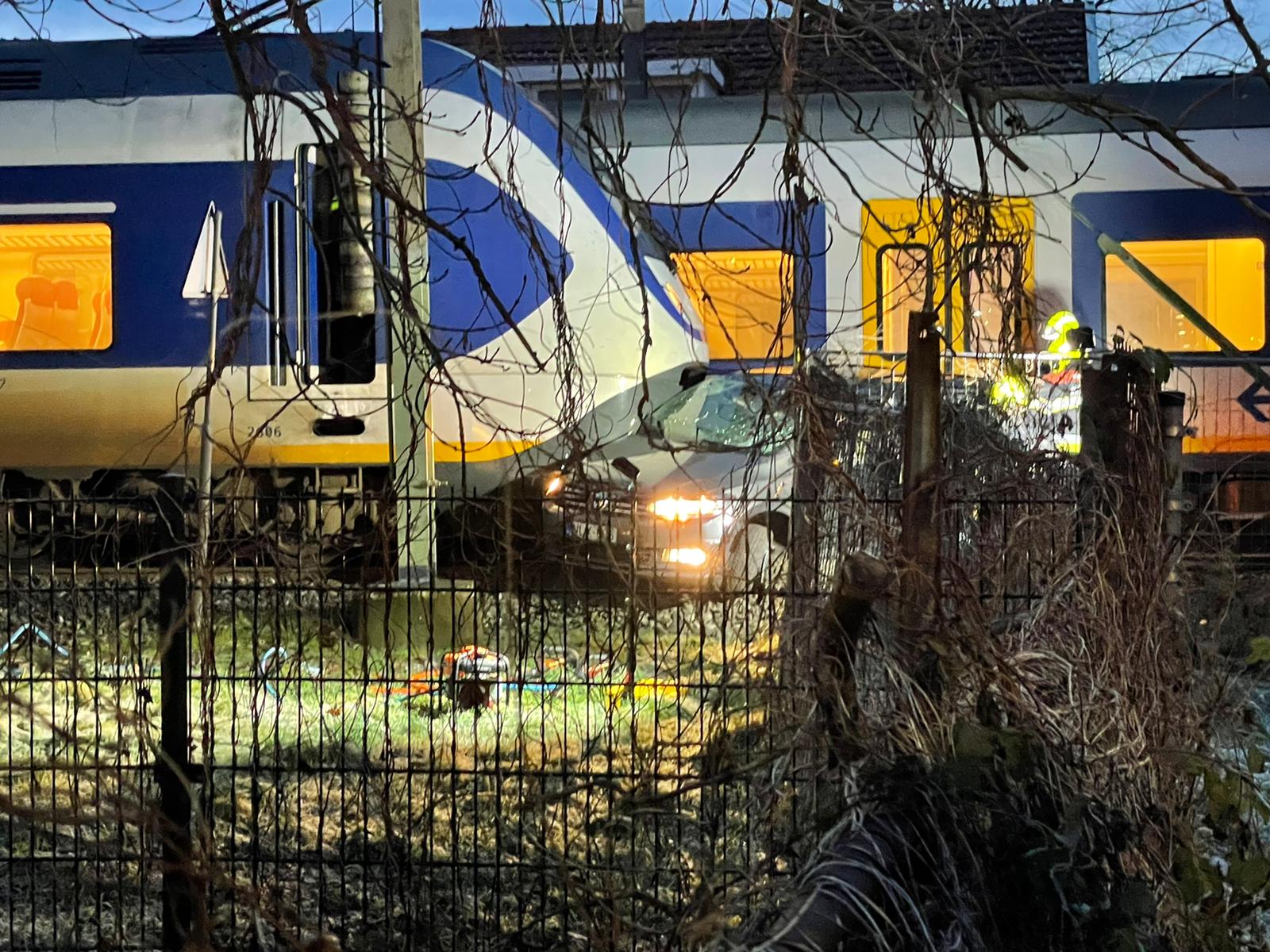 Auto geschept door trein op Kleverlaan, twee mensen gewond