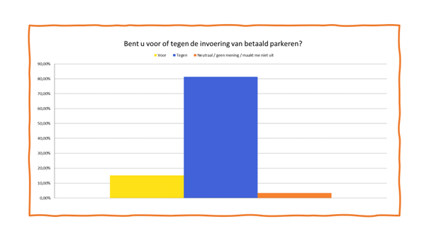 Eerder werd ook al een online petitie tegen het parkeerbeleid meer dan achtduizend keer ondertekend. Het onderzoek van de VVD heeft ruim tweeduizend deelnemers. Toch hoopt Eloy dat de gemeente hier wel naar gaat luisteren. “Het is niet alleen een ja en nee vraag. We hebben gevraagd of mensen parkeerdruk ervaren en of zij andere dingen merken. Zo blijkt dat mensen overlast ervaren van werkbusjes en dat de gemeente parkeerplaatsen verwijdert.”