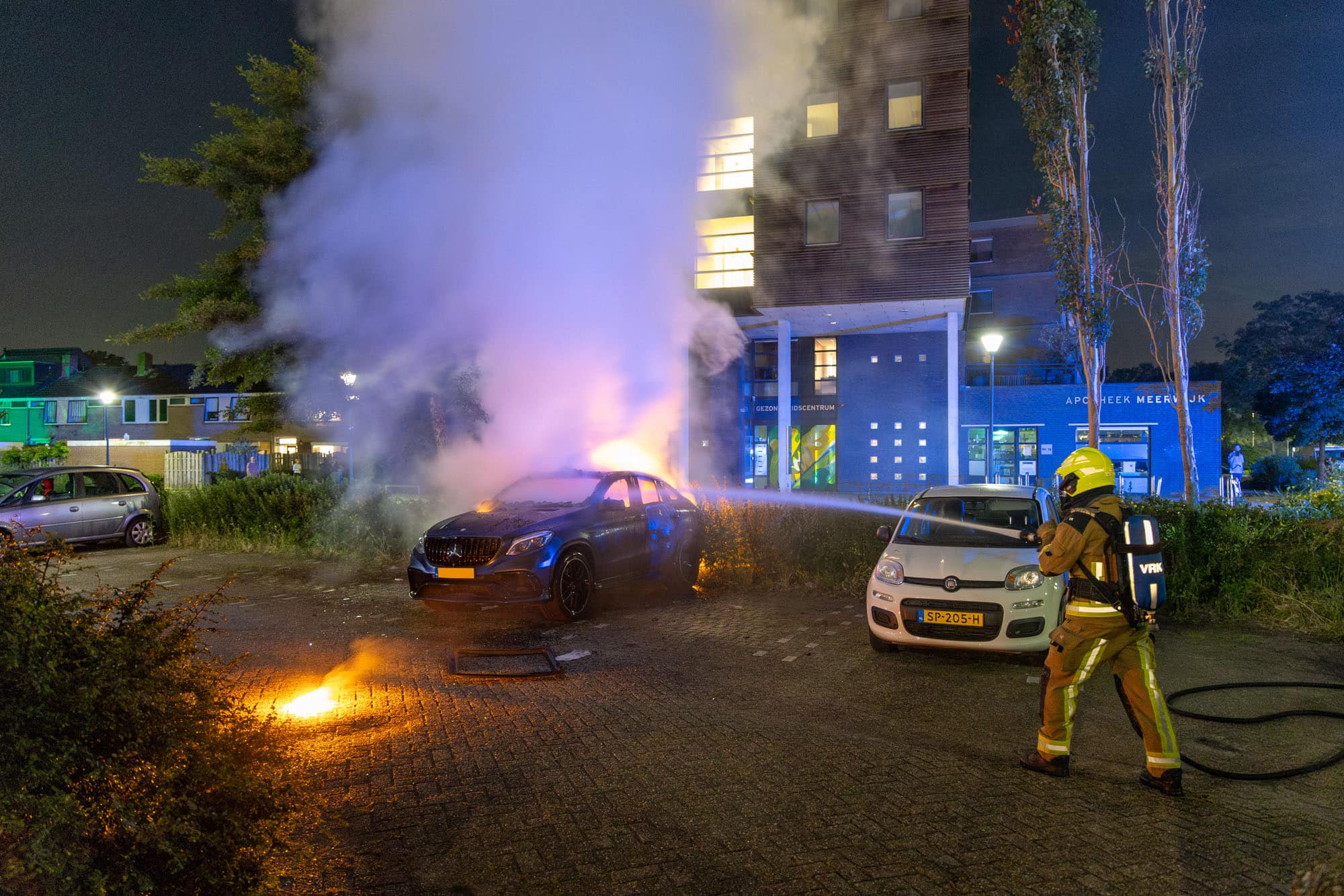 Op de Jan van Zutphenstraat in Schalkwijk is rond middernacht een Mercedes in vlammen opgegaan. De auto stond daar geparkeerd op de parkeerplaats.