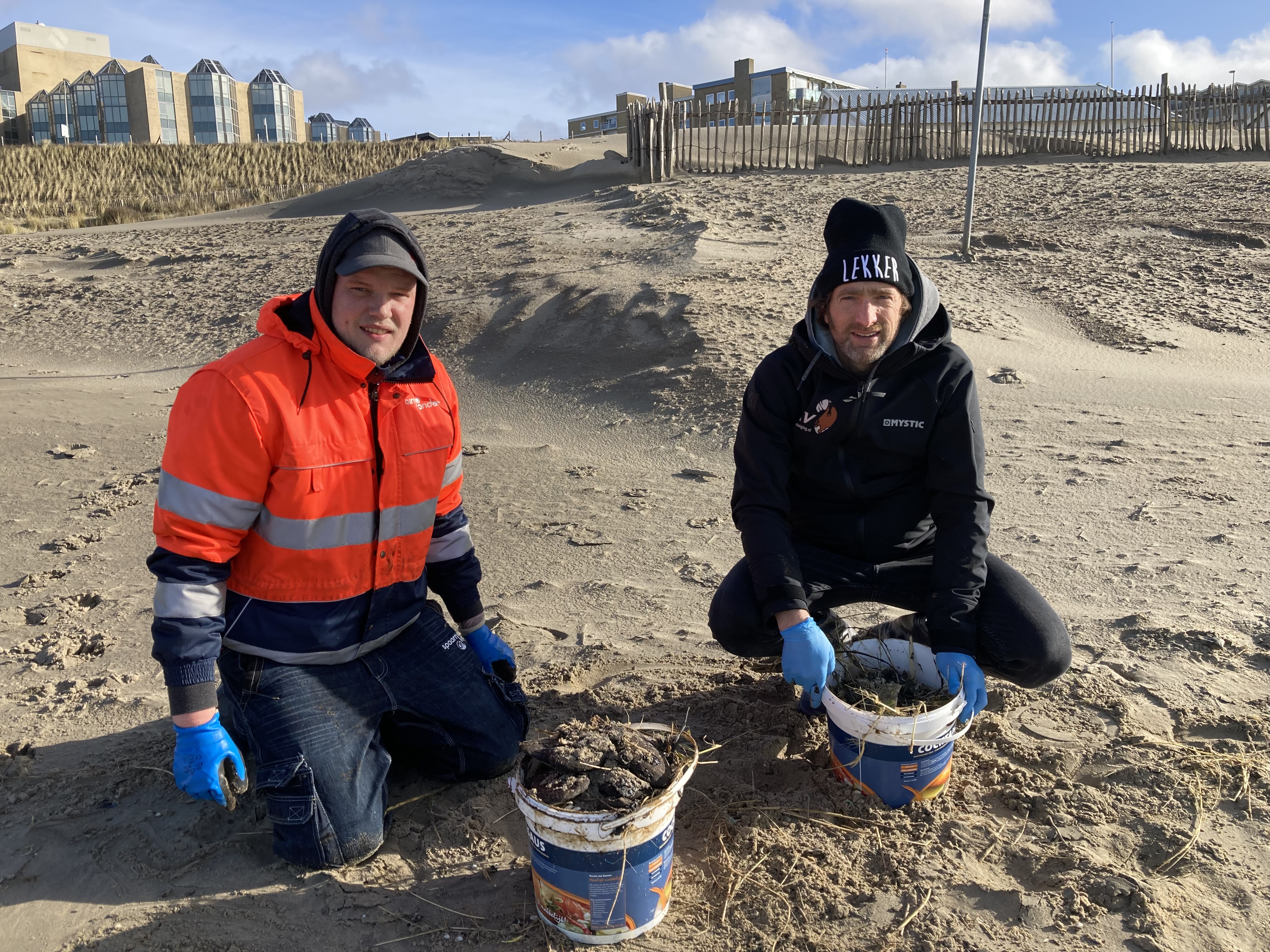 Dave was afgelopen weekend aan het kitesurfen en ontdekte naderhand dat zijn kite en board onder de olie zaten. “Het is vies, het lijkt op kattenpoep maar dan hele verse.” Hij meldde zich vanmorgen bij de gemeente Zandvoort om te kijken of hij kan helpen met het opruimen ervan. “Ik heb mijn werk uit mijn handen laten vallen en ben deze kant opgekomen om te helpen. Dit moet hier zo snel mogelijk weg.”