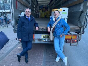 Gisteren kwam burgemeester Jos Wienen al een kijkje nemen bij de inzamelingsactie van Anna Roelofs-Ivanchenko. “Dit initiatief steunen wij, en waar nodig zullen we hulp bieden”, zei hij.