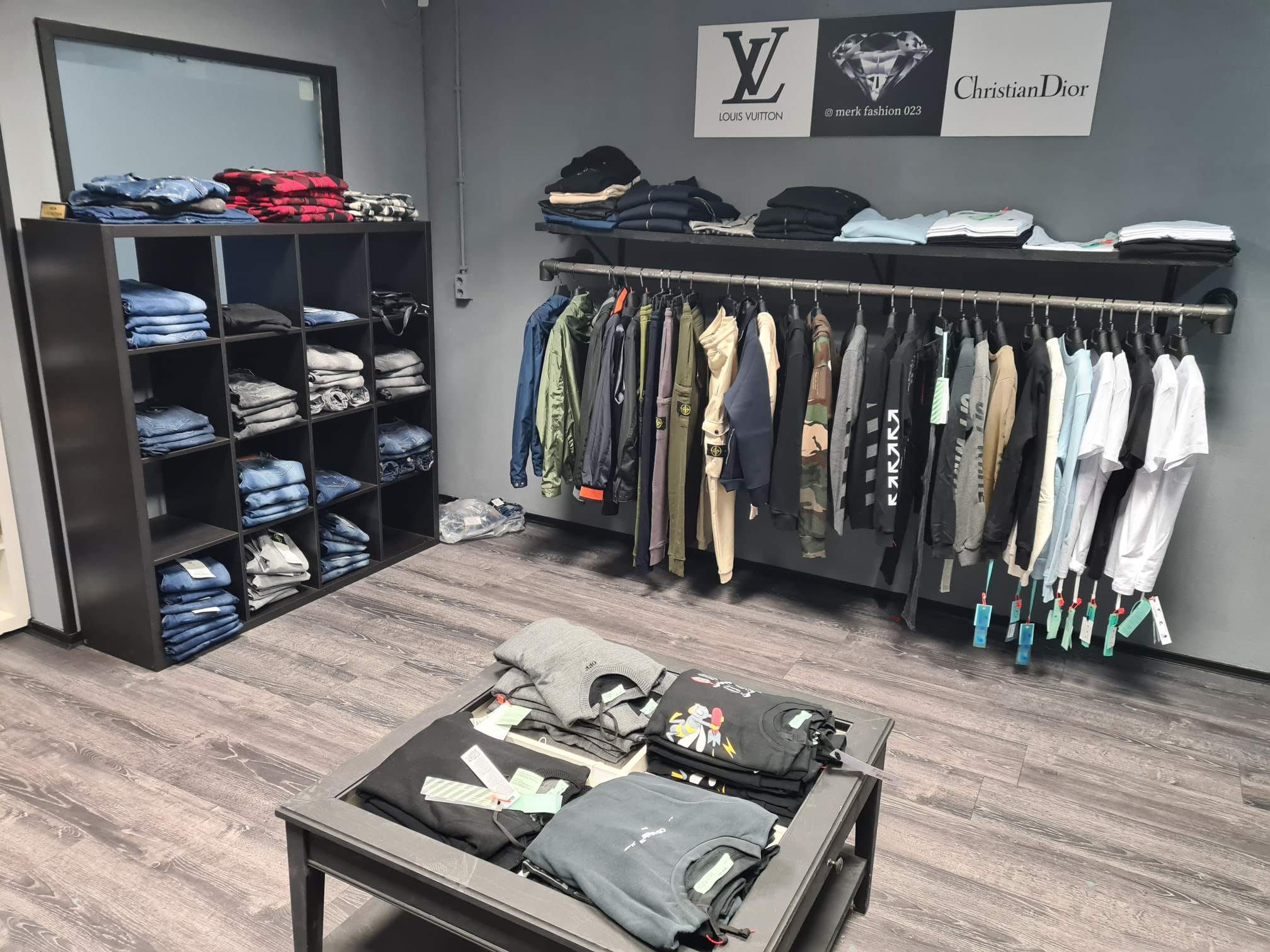 Op een foto van de politie is goed te zien dat er in het betreffende pand overhemden, spijker- en joggingbroeken, truien en t-shirts werden verkocht. “Het gaat om een hele winkel vol. Inclusief pashokje”, aldus de woordvoerder. De politie kwam de winkel in de Waarderpolder op het spoor na meerdere meldingen bij Meld Misdaad Anoniem.