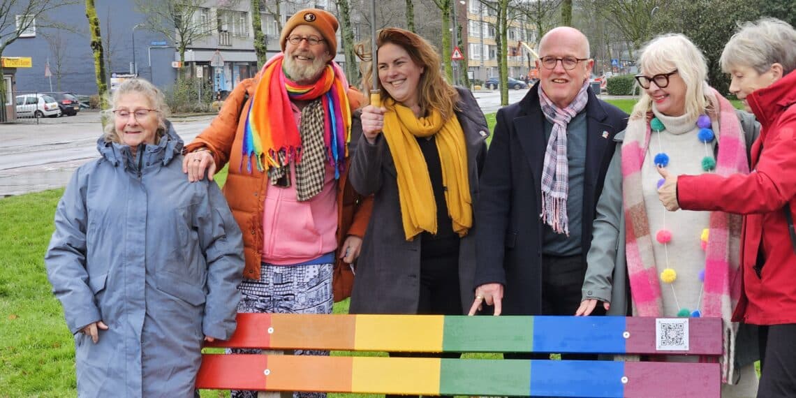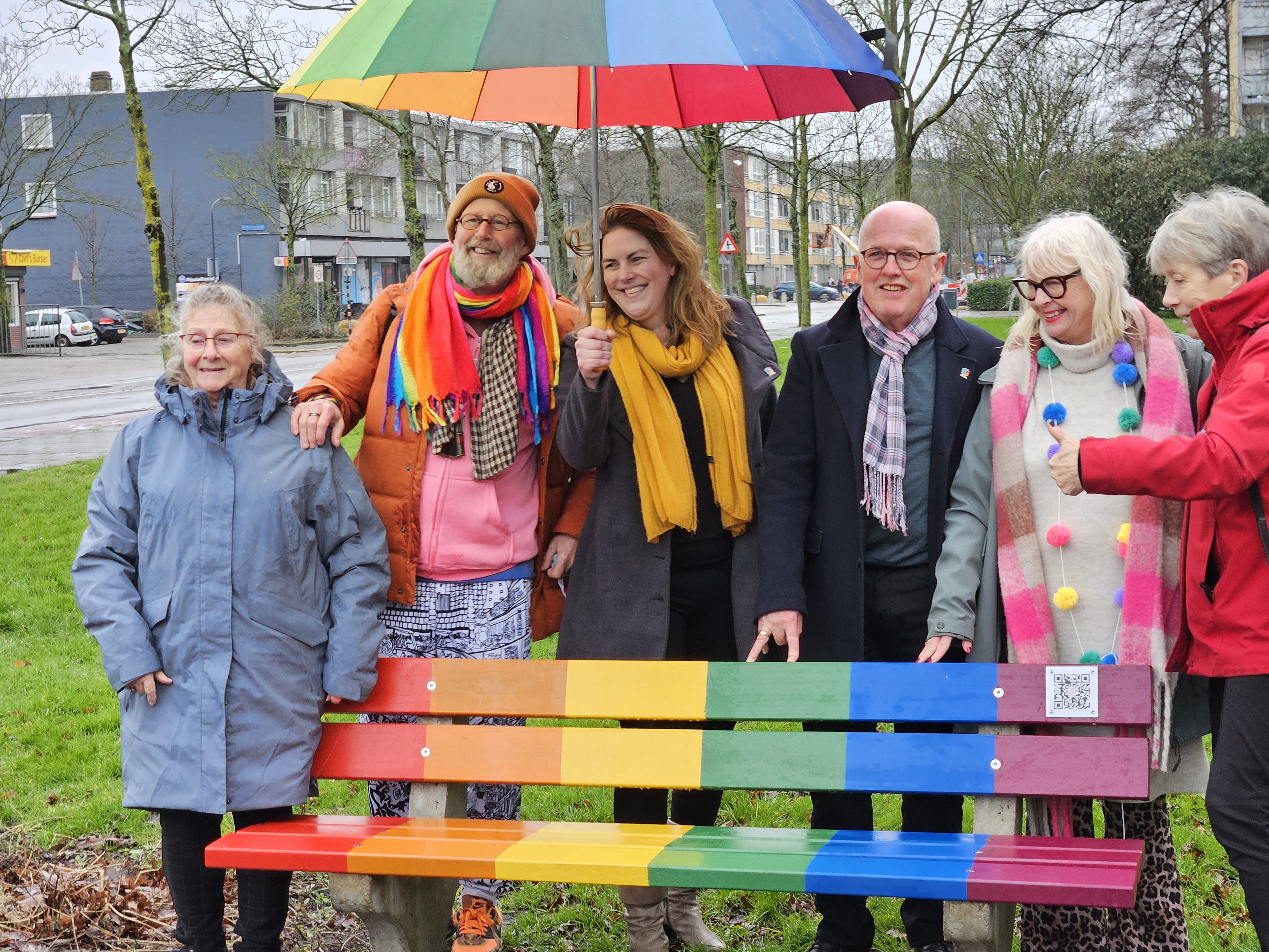 Toch duurt het nog bijna drie jaar tot het moment daar is. “Eerst liep het project, door onder andere corona, vertraging op. Toen het bij wethouder Eva de Raadt terechtkwam, is het in een stroomversnelling gekomen. Eind vorig jaar kregen we bericht dat de bankjes klaar waren alleen bleek het geen regenboog te zijn. Een kleur ontbrak. Binnen no-time is het opnieuw geschilderd en hebben we 14 februari als datum gekozen.”