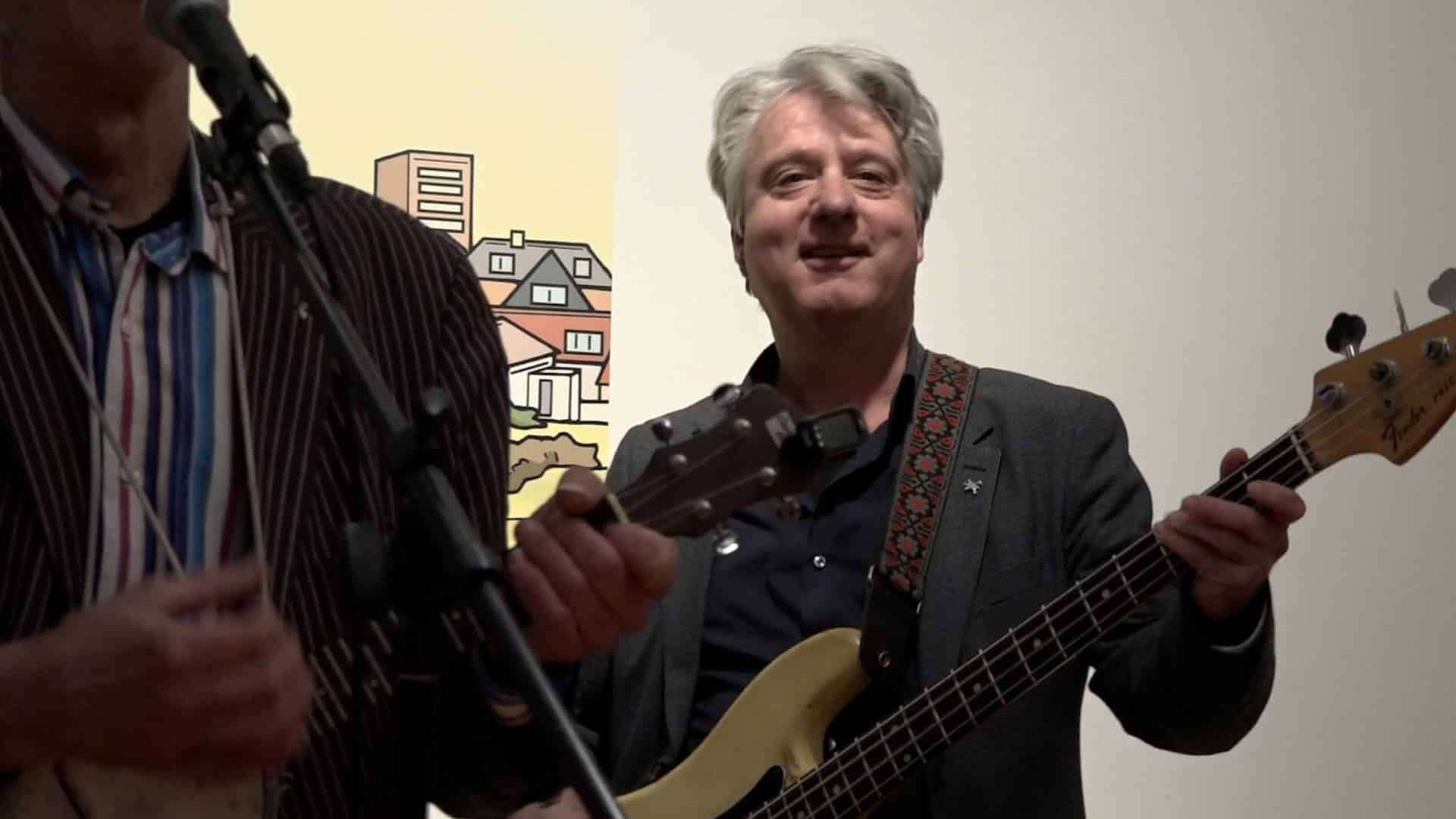 De burgemeester van Zandvoort, David Moolenburgh, speelde tijdens de opening van de nieuwe tentoonstelling “Zandvoort in Klare Lijn” samen met het Haarlemse Ampzing genootschap. De tentoonstelling is gemaakt door de Haarlemse kunstenaar en Ampzing-lid, Eric Coolen.