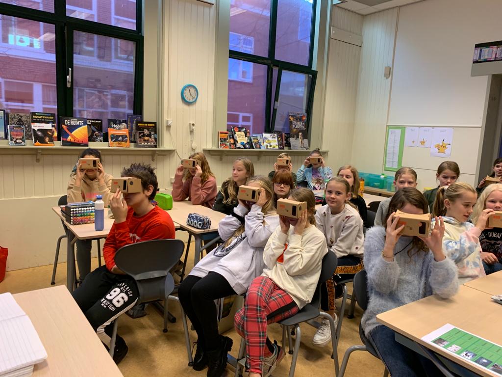 De scholieren uit de hoogste groep van de basisschool kunnen met een speciale ‘virtual reality-bril’ naar video’s op internet kijken en zo een indruk krijgen van de verschillende ruimtes in het pand en de vakken op de middelbare school. Deze ‘VR-bril’ krijgen ze van huidige brugklassers van Sancta Maria, die deze week hun oude basisschool bezoeken om voorlichting te geven over de middelbare school. Ze vertellen onder andere wat er anders is in de brugklas en wat belangrijk is bij het maken van een keuze voor een nieuwe school.