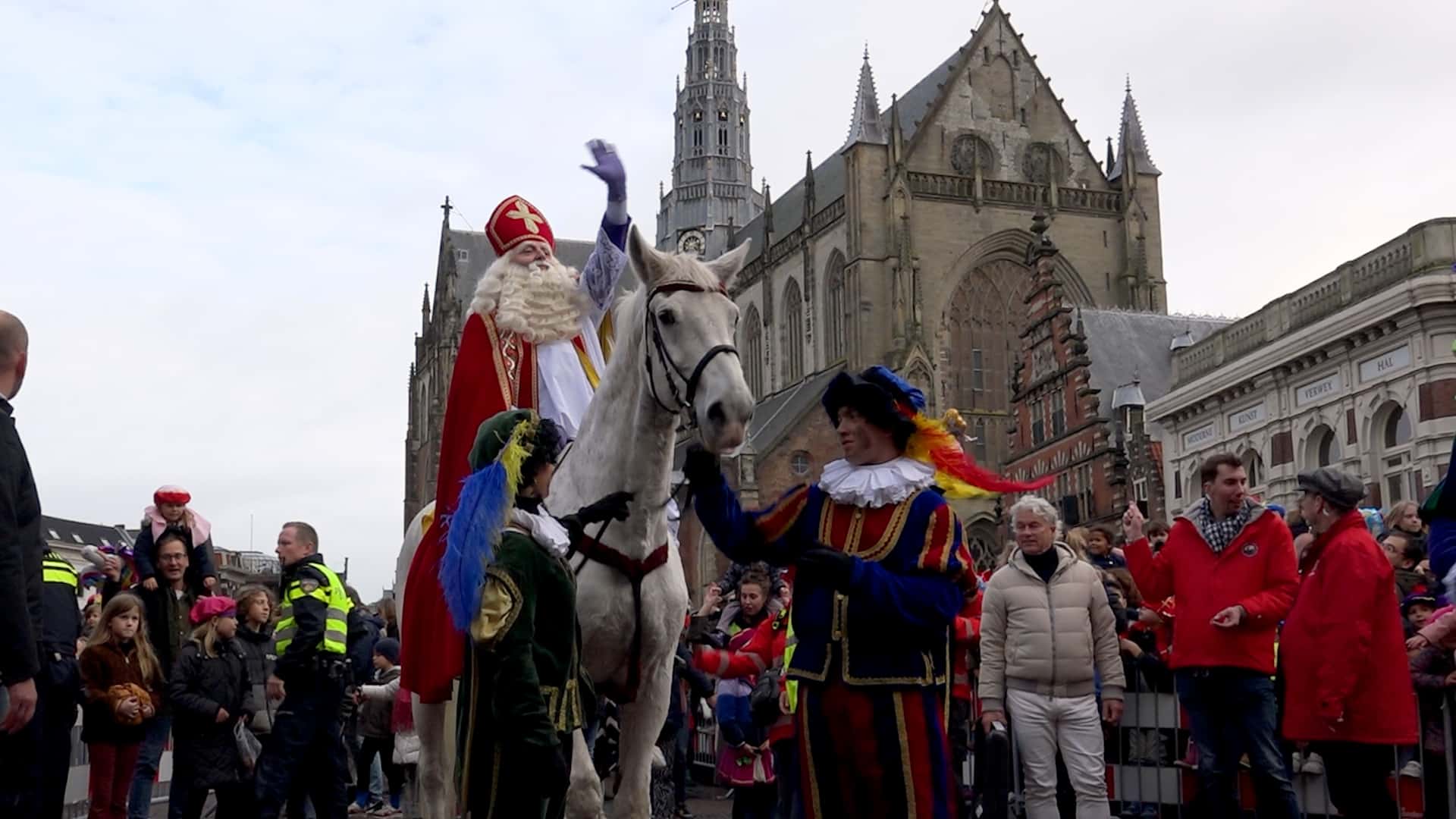 Sinterklaas is bij de intocht in Haarlem lelijk ten val gekomen. Dat gebeurde op het moment dat hij van zijn paard Ozosnel wilde afstappen op de Grote Markt. Burgemeester Wienen, die net werd geïnterviewd, schrok van de val. “Oh, de oude man”, riep hij. Gelukkig liet de goedheiligman al snel weten dat het goed met hem ging. “Met de deur in huis gevallen”, zei hij lachend.