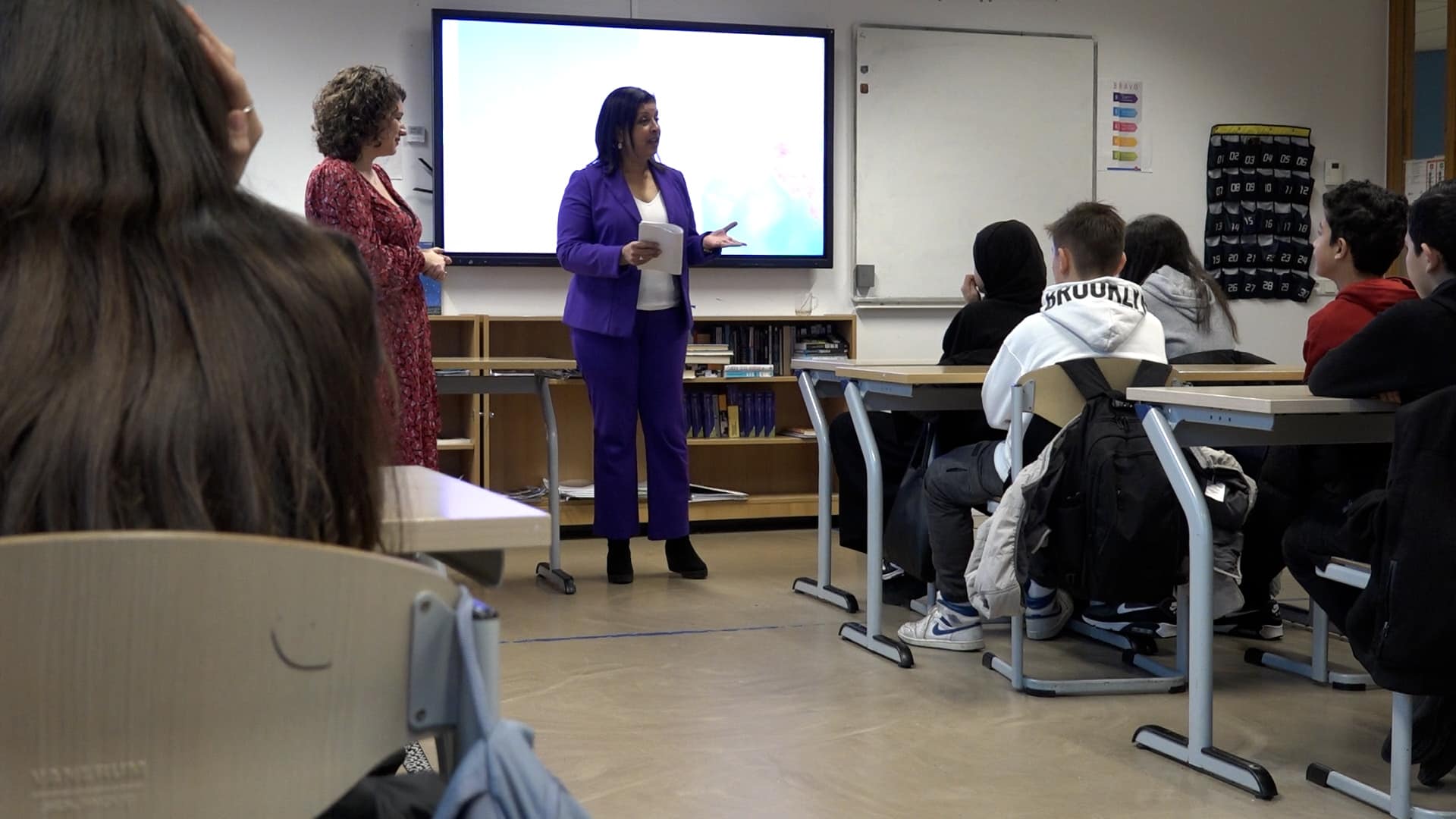 Staatssecretaris Mariëlle Paul van onderwijs en emancipatie bracht op Paarse Vrijdag een bezoek aan het Haarlem College. Ze liep een ochtend mee en woonde verschillende activiteiten bij. “Ik vond het heel mooi om te zien, er was veel aandacht en betrokkenheid in de klas”, zei Paul.