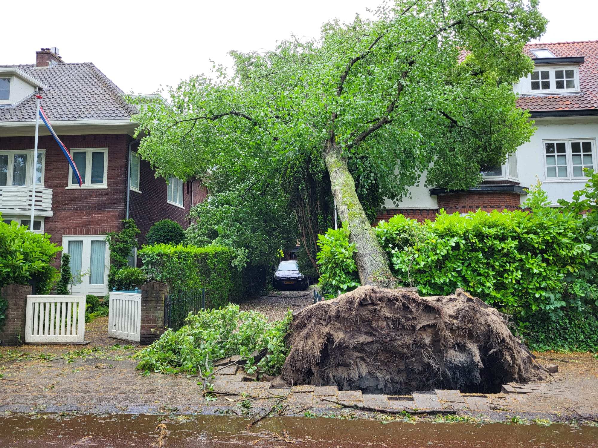 Lepenlaan Bloemendaal: omgevallen boom op woning | Foto: Haarlem105 / Aiko Letschert