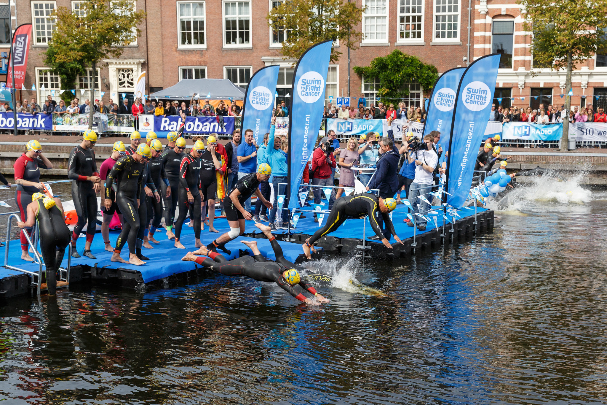 Voorzitter Margot Span van Swim to Fight Cancer Haarlem: “In september zouden weer honderden Haarlemmers het Spaarne in springen om zo veel mogelijk geld in te zamelen. Wij voelen ons echter op dit moment niet prettig bij het actief werven voor ons doel en we willen dat ook niet van onze deelnemers vragen. Hoewel 6 september nog ver is en de genomen maatregelen voor grote evenementen voorlopig tot 1 juni a.s. gelden, hebben wij toch besloten om ons mooie evenement naar 2021 te verplaatsen. Mensen én bedrijven zullen immers nog lang de naschokken voelen van de coronapandemie. Voor eenieder zal de focus nu liggen op hoe je ná de crisis weer alles op de rit gaat krijgen.”