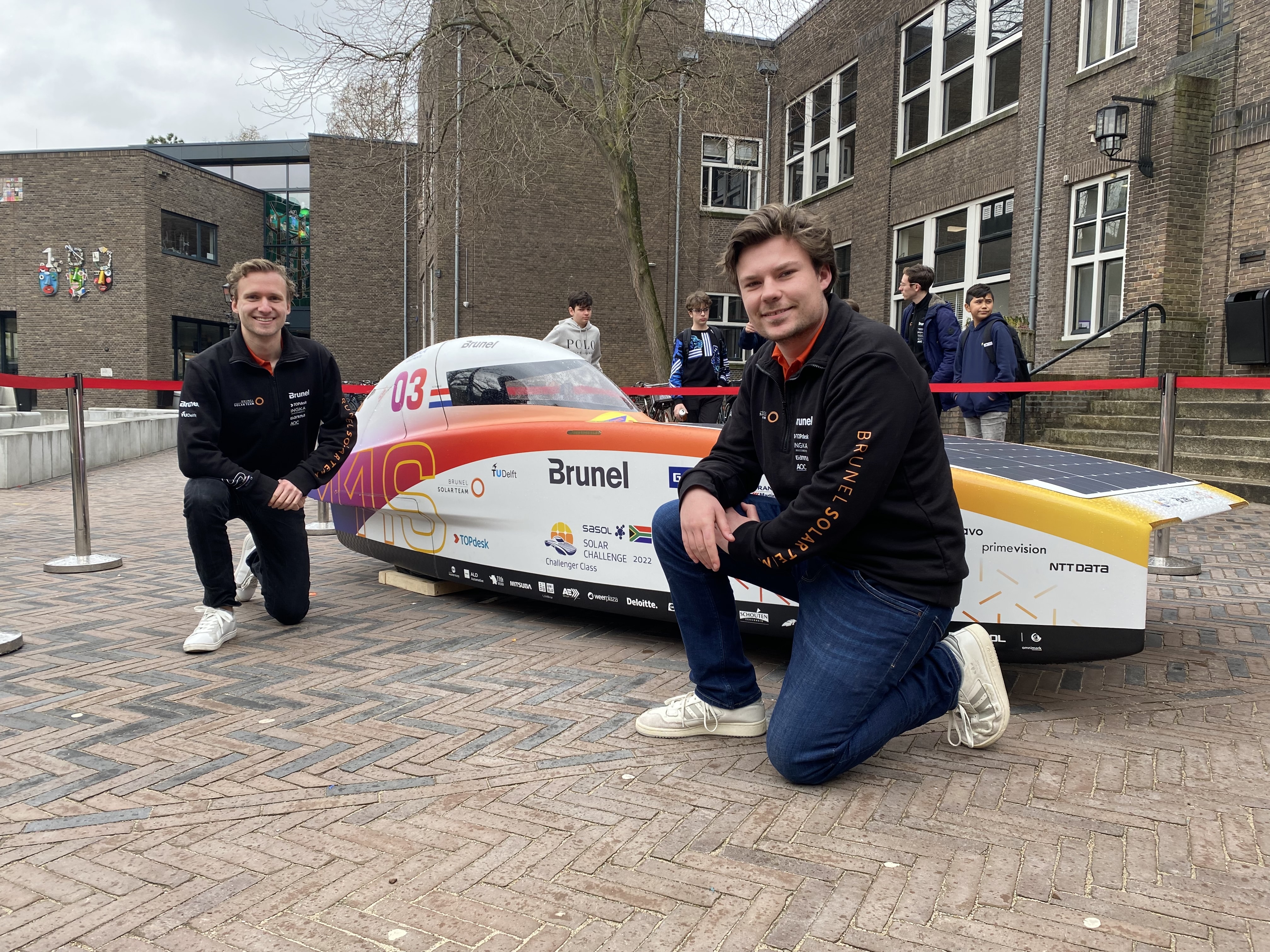 De scholieren van het ECL zijn onder de indruk van Tijn zijn woorden en hoe de zonneauto eruit ziet. Inmiddels is het Brunel Solar Team al druk bezig met het ontwikkelen van de opvolger, de Nuna 12. Hij legt uit dat dat de coureur straks best een beetje oncomfortabel in de auto zal zitten. “Dat is de paradox van een zonneauto. Je heb de nieuwste technologieën, maar er moet zoveel mogelijk gewicht bespaard worden en dat gaat dan ten koste van het comfort.”