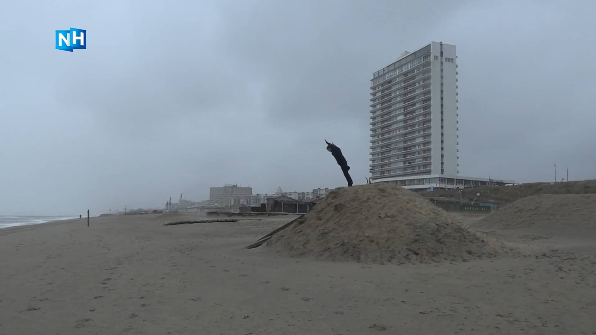 Terwijl Corrie met windstoten van tegen de 100 kilometer per uur op de kust beukt, zijn er ook mensen die even ‘lekker’ gaan uitwaaien op het strand. Zo ook in Zandvoort vanmorgen.