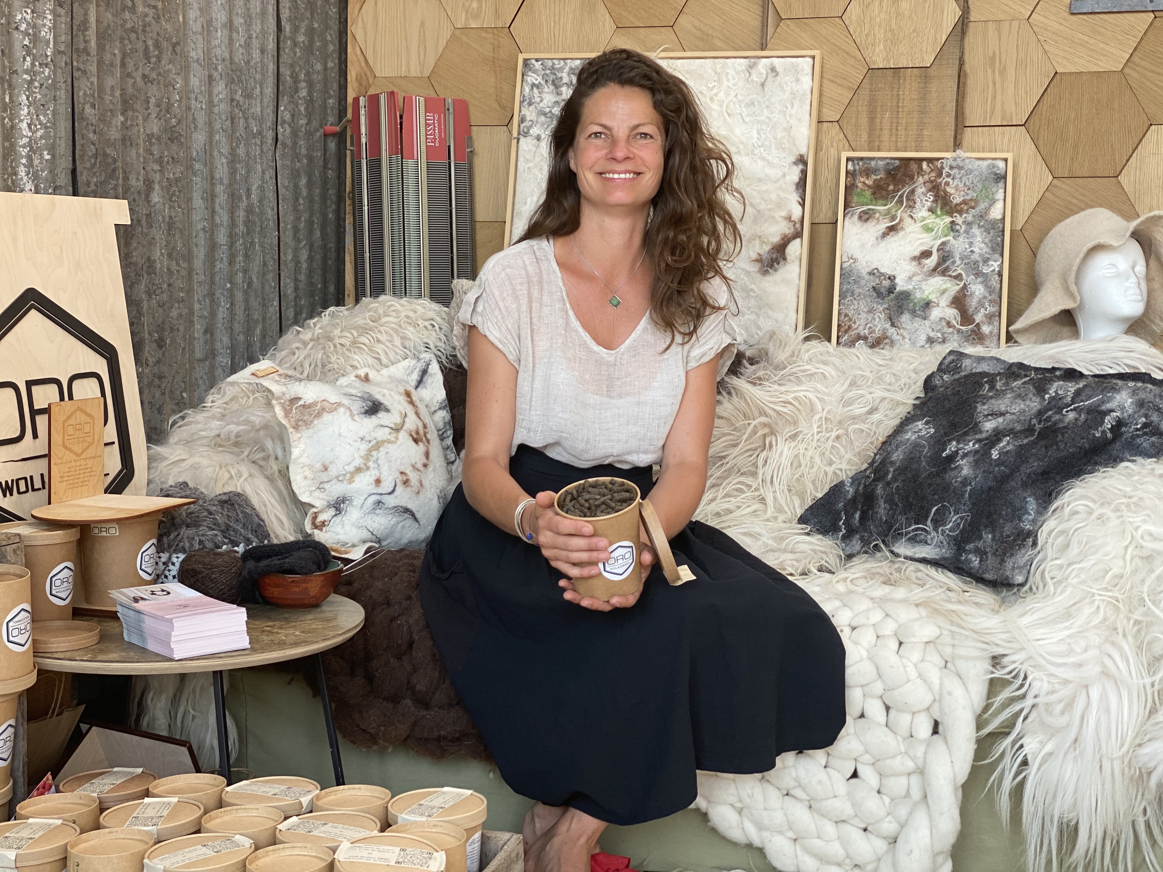 De wolkorrel wordt gebruikt als plantenvoeding. “Het houdt vocht vast en voorkomt daarmee uitdroging”, legt Bogtman uit. Ze is op het idee gekomen nadat er een vraag voorbij kwam wat er met de grote Nederlandse wolstapel moet gebeuren. “Wij exporteren nu al onze wol naar China, in Nederland is geen verwerkingsbedrijf meer”, vertelt Scheltus.
