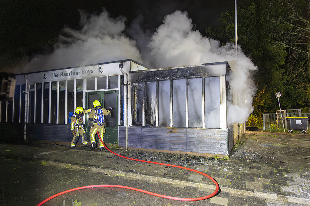 Bij het clubhuis van voetbalvereniging The Haarlem Boys is vannacht brand uitgebroken. Het gebouw liep flinke schade op. Het vuur ontstond rond 20.40 uur bij de sportclub op de hoek van de Wagenweg met de Westelijke Randweg. Hoe de brand is ontstaan, is nog onduidelijk.